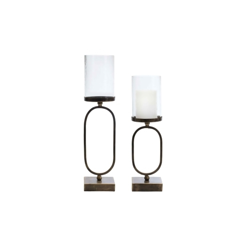 - Modern Metal Candle Holder with Glass Hurricane (Set of 2)