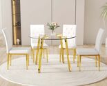 - Modern Round Glass Dining Set - Gold Legs, White Chairs