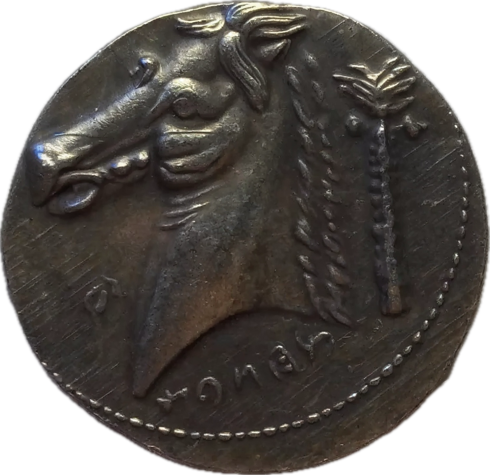 Diese moderne Replik einer antiken griechischen Tetradrachme aus Syrakus bietet einen Einblick in die Kunstfertigkeit und Symbolik des 5. Jahrhunderts v. Chr. Siziliens. Die Vorderseite zeigt das heitere Profil von Arethusa, der Nymphe, die als Schutzpatronin der Süßwasserquellen von Syrakus verehrt wird, ihr Haar ist aufwendig mit einem Diadem aus Schilf gestylt, einem Markenzeichen der Münzpragung der Stadt. " Die detaillierte Darstellung ihres Haares und die fließenden Linien ihres Kopfschmucks spiegeln die außergewohnlichen Fahigkeiten der alten syrakusanischen Graveure wider, die für ihre Fahigkeit bekannt waren, Naturalismus mit mythologischen Themen zu verbinden. Dieses Design, das oft der Zeit der Deinomeniden-Dynastie unter Gelon und Hieron I. zugeschrieben wird, unterstreicht Syrakus? kulturelle Bedeutung in Magna Graecia wahrend einer Zeit politischer und wirtschaftlicher Blüte. Die Rückseite zeigt ein kraftvolles Bild eines Pferdekopfes, ein Symbol, das tief mit Syrakus? reiterlichem Erbe und seinen gefeierten Siegen bei den Panhellenischen Spielen, insbesondere bei Olympia, verbunden ist. Das Pferd ist mit einer geflochtenen Mahne dargestellt, und ein Palmzweig daneben bedeutet Triumph, ein haufiges Motiv auf syrakusanischen Münzen, das die sportlichen und militarischen Leistungen der Stadt ehren soll. " Die Inschrift "??????" (Syrako), eine verkürzte Form von Syrakus, umgibt das Design und bestatigt die Herkunft der Münze. Dieses Novodellstück ist zwar kein Original, fangt aber die Essenz von Syrakus? goldenem Zeitalter ein und macht es zu einer überzeugenden Erganzung für Sammler, die von der antiken griechischen Numismatik und dem historischen Erbe eines der einflussreichsten Stadtstaaten Siziliens fasziniert sind.