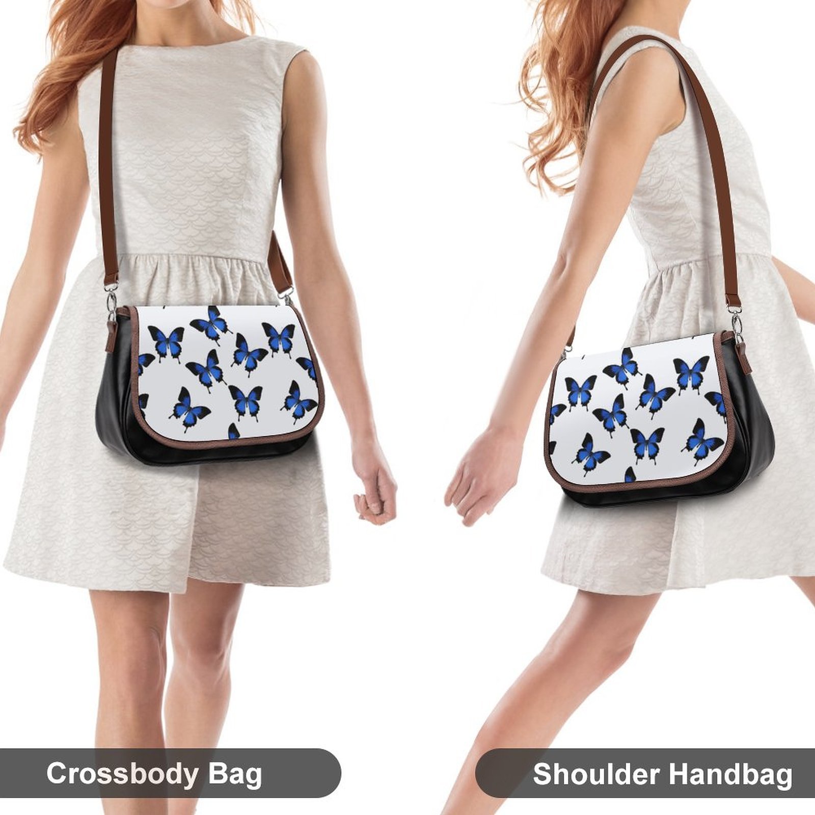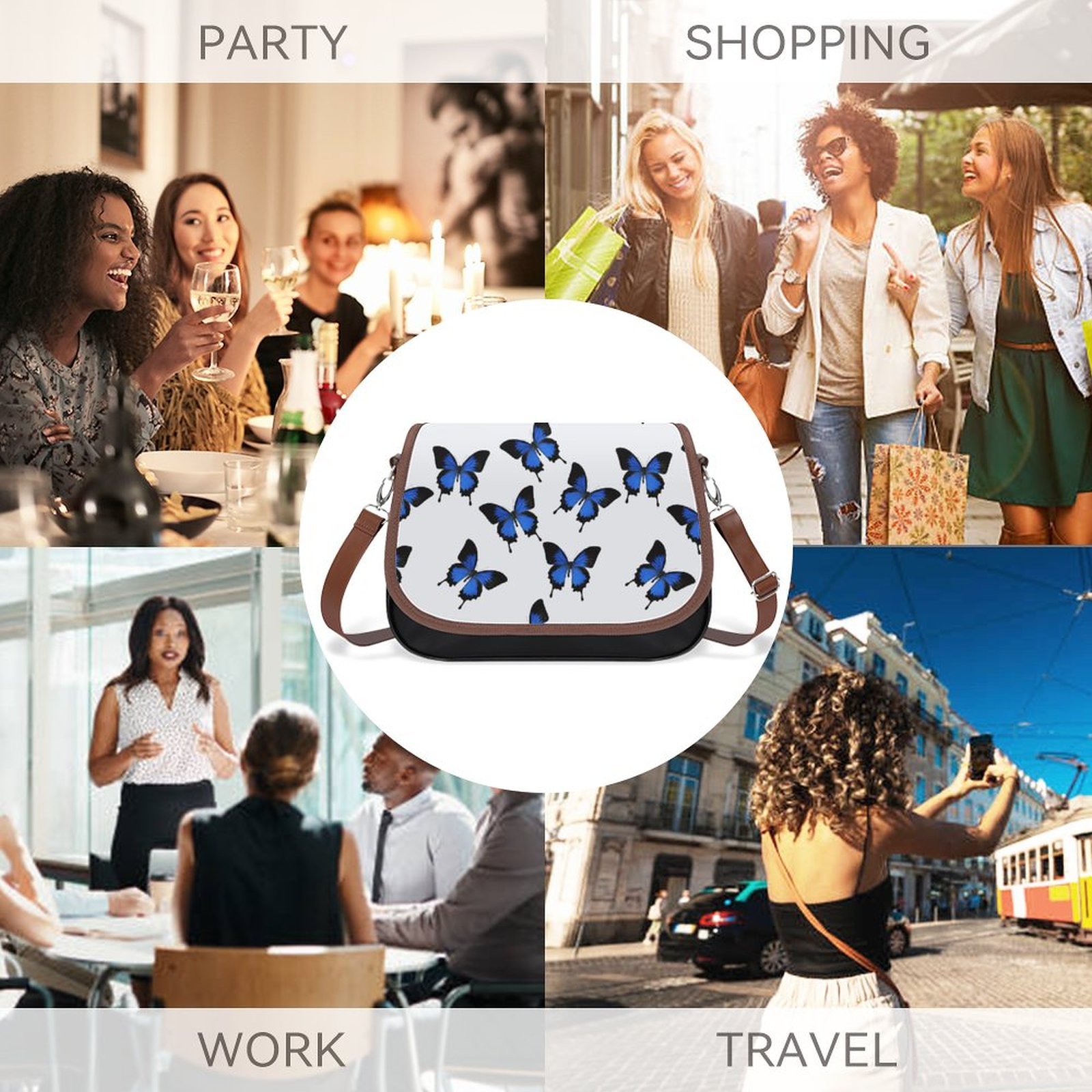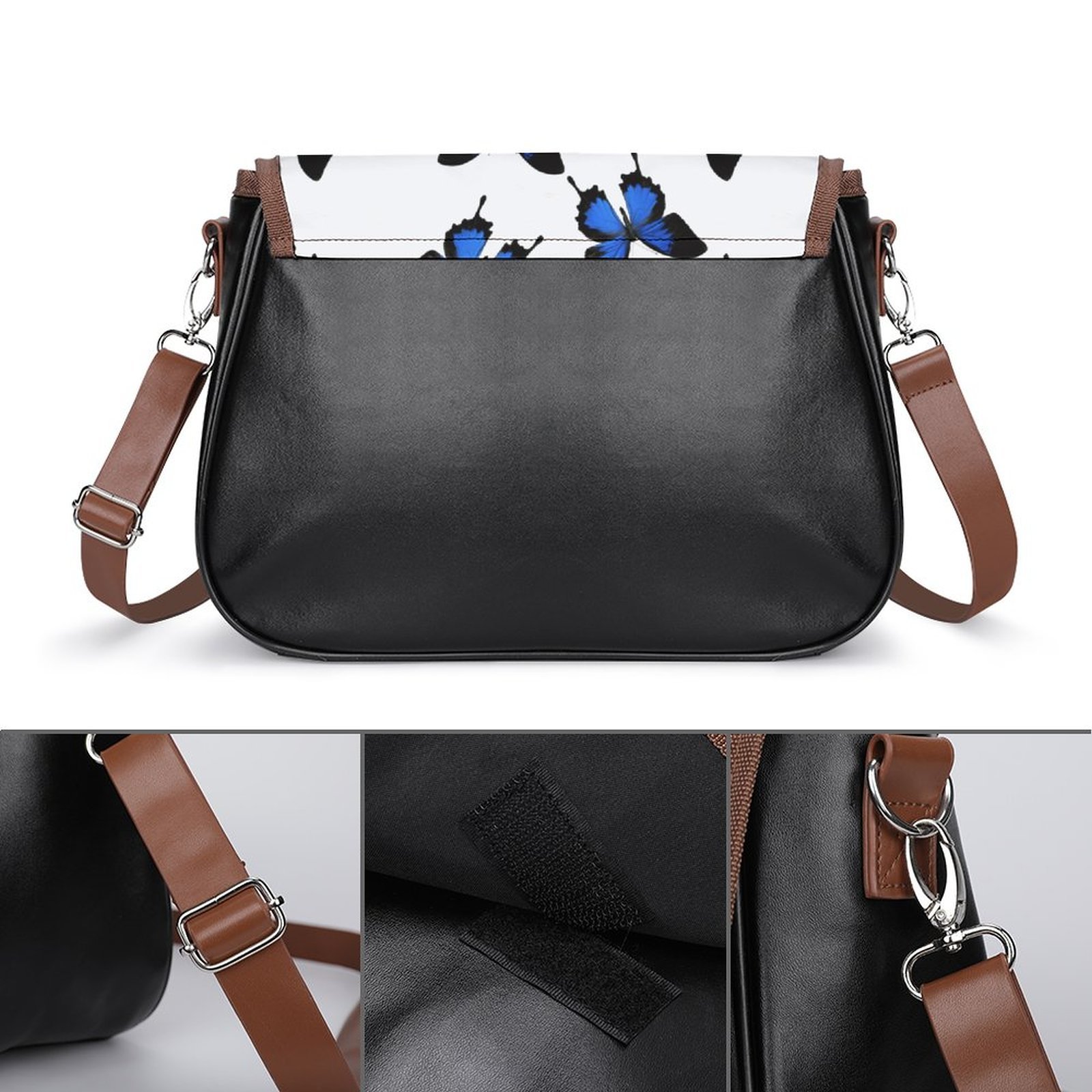 - Mondxflaur Blue Butterfly Messenger Bag for Women PU Leather Crossbody Bag