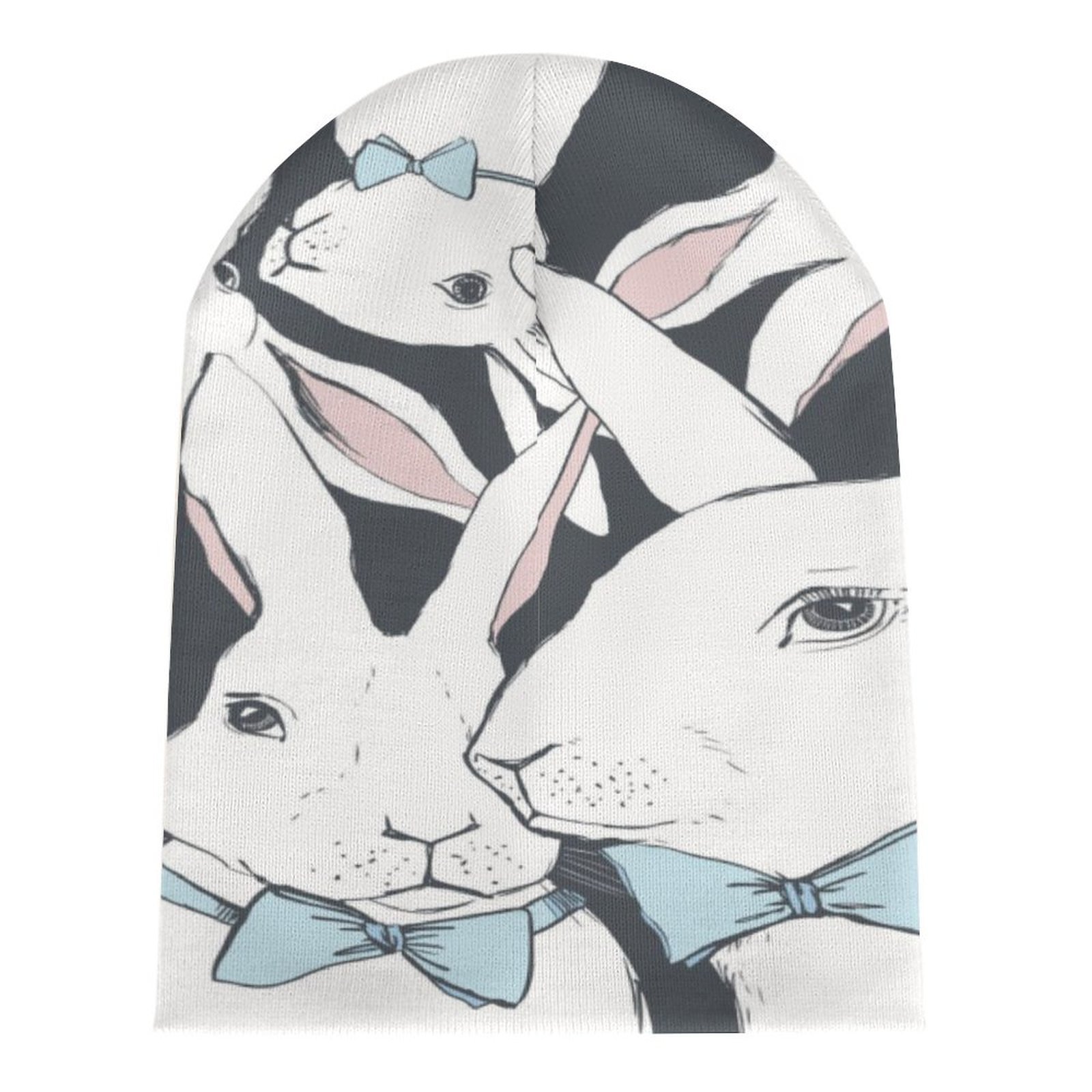 Mondxflaur White Rabbit Winter Beanie Hats Warm Men Women Knit Caps for Adults