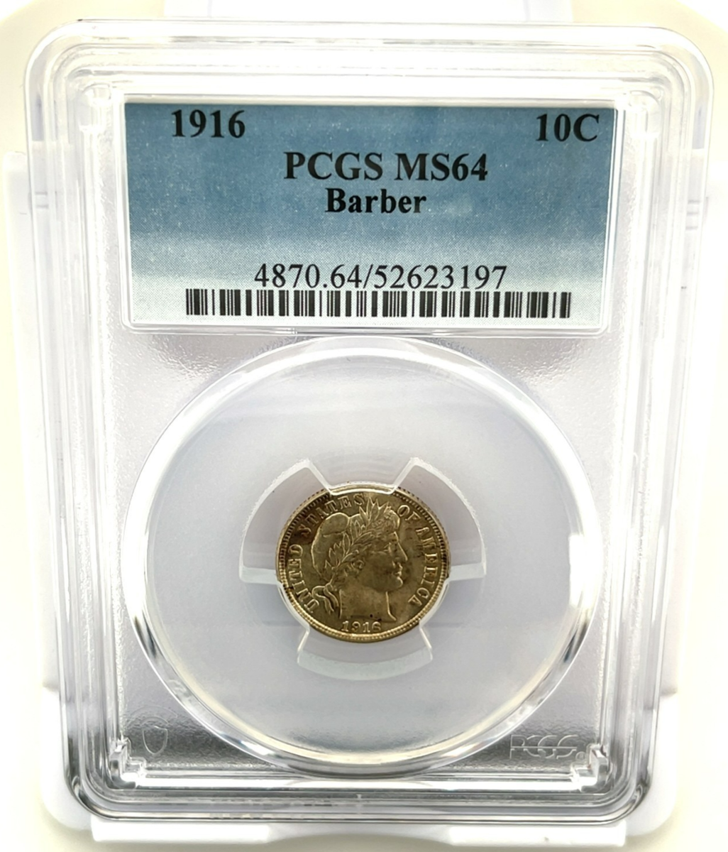 Moneda Barber De 10C De 1916 Calificada Por PCGS Como MS64