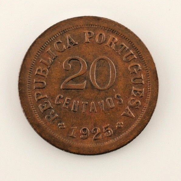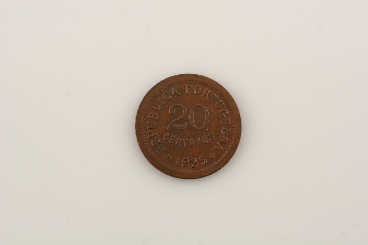 Moneda de 20 centimos (AU) de Portugal de 1925, aproximadamente sin circular