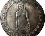 Esta moneda de dolar de fantasía única es una llamativa replica del diseño de 1881, que muestra un toque contemporaneo en una pieza numismatica clasica. El anverso presenta una representacion elaborada de una figura femenina, que ofrece una perspectiva fresca y poco convencional sobre el diseño tradicional del dolar estadounidense. Elaborada con meticulosa atencion al detalle, esta moneda sirve como un intrigante objeto de coleccion para los entusiastas que buscan una interpretacion distintiva de una moneda ampliamente reconocida. En el reverso, la moneda muestra la imagen iconica del aguila americana, flanqueada por la inscripcion "Estados Unidos de America, un dolar." El aguila, representada con alas extendidas y adornada con una corona de laurel, simboliza la fuerza y ??la independencia, elementos que se han representado característicamente en las monedas de Estados Unidos a lo largo de la historia. Esta notable mezcla de imagenes tradicionales con expresion artística moderna proporciona un contraste convincente que da nueva vida a un coleccionable clasico. Perfecto tanto para coleccionistas experimentados como para aquellos nuevos en el pasatiempo, esta moneda es una adicion cautivadora a cualquier coleccion.