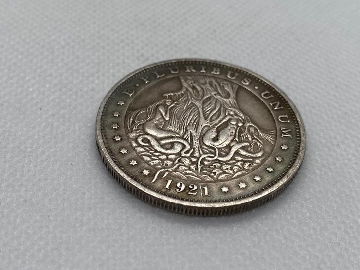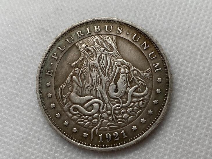 - Moneda de fantasía de dólar Morgan 1921 con sirenas grabadas