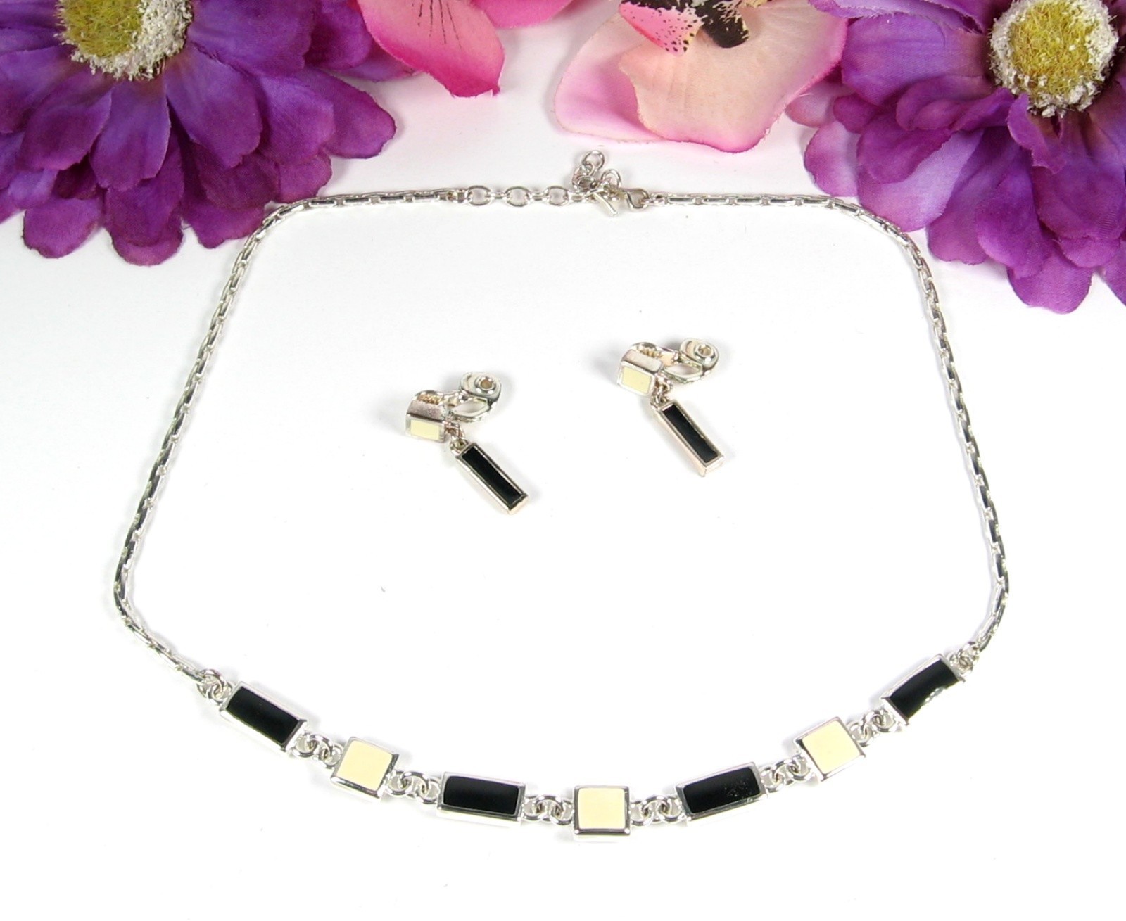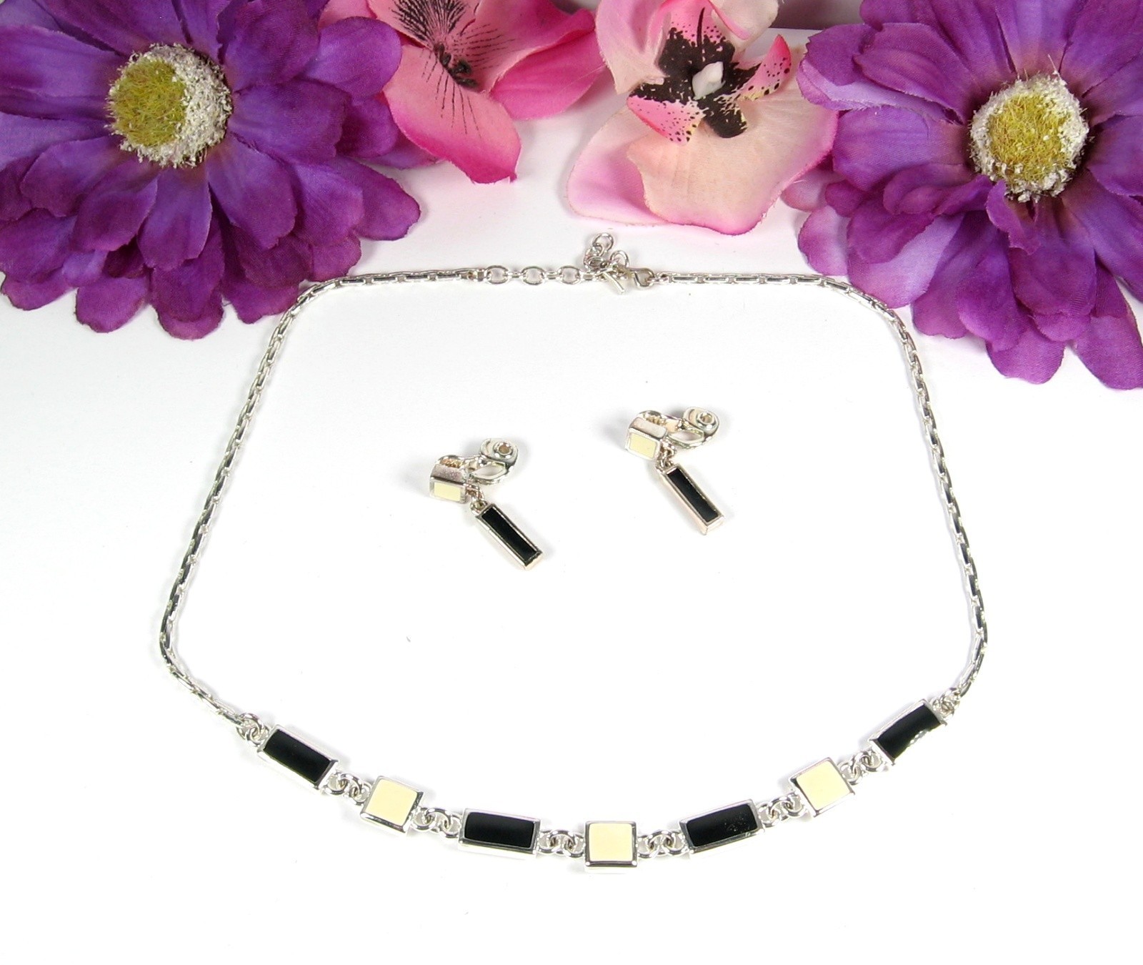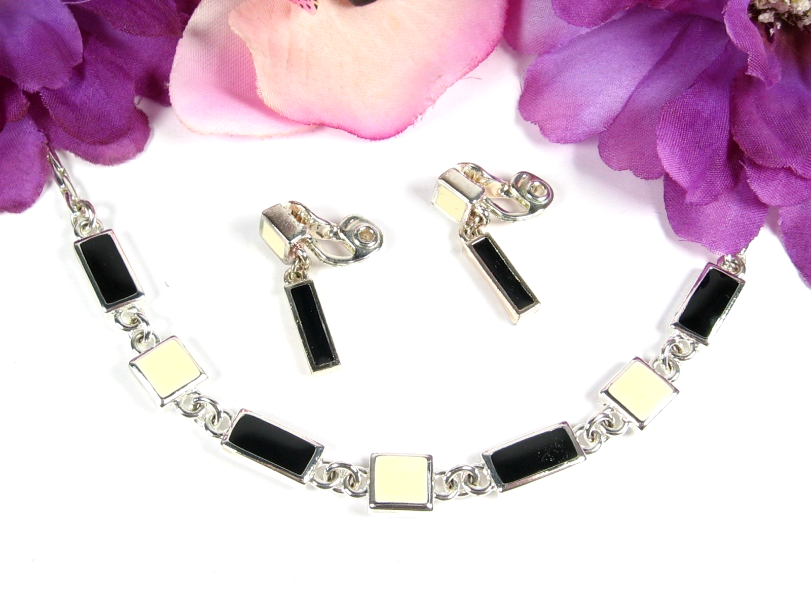 Earrings are Clip On/Earrings have the Black Enamel |