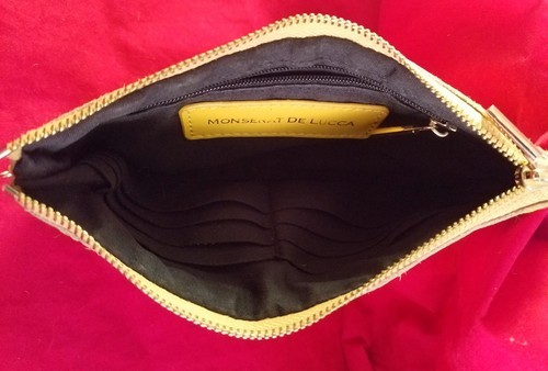 A vendre est un portefeuille en cuir en cuir de veau monserat de Lucca super mignon. Le bracelet a un interieur noir avec du materiel en argent. Fermeture a fermeture eclair, emplacements de cartes, poches zippees exterieures et interieures.