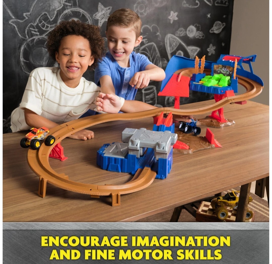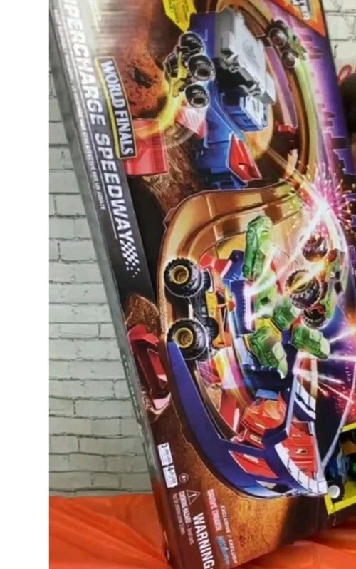 The Monster Jam World Finals SuperCharge Speedway Track Set is a colorful and exciting playset featuring Hot Wheels Monster Jam vehicles. Made of durable plastic, this track set is designed for children aged 3 to 13 years old and includes a variety of Monster Trucks to collect and play with. The set encourages imaginative play and creativity, making it a perfect gift for both boys and girls who love the Monster Jam brand. Get ready for high-speed racing and thrilling stunts with this fun and engaging toy set.