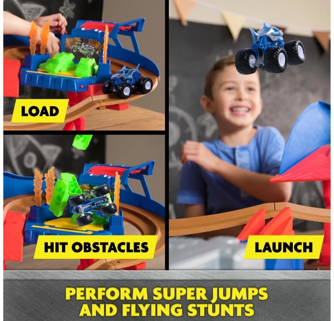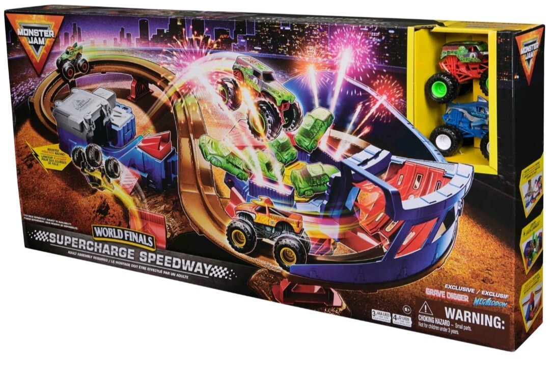 - Monster Jam, Supercharge Speedway Playset, Megalodon and El Toro Loco Die-Cas...