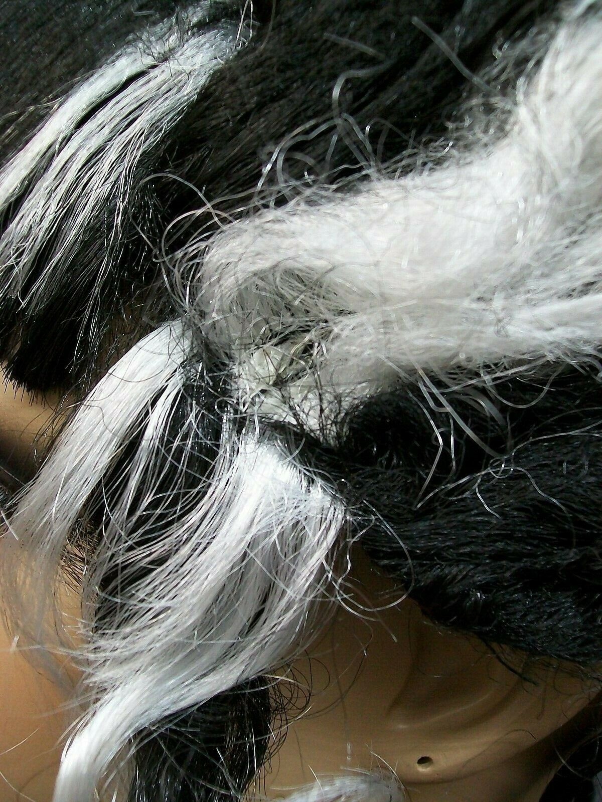 NEW MONSTER'S MISTRESS WIG INCLUDES: One Wig Only RECOMMENDED FOR: Adult Use ADDITIONAL NOTES: New in Package. Some of the fiber is stiff and cannot be combed through. Some fiber is held with glue and hair pins. Glue may be visible. Some edges on the cap are rolled or folded. This wig will require extra styling, effort and patience. I have several, some may have all, some, or no issues. Shipped at random. Wig does vary from manufacturer's photo. Please see all images. SOLD AS IS. USES: Costume Accessories, Photo Prop, Dress up, School Play or Musical, Masquerade or Costume Ball, Fantasy Dress up, Roleplay, Cosplay, LARP, Anime, etc. Black White Monster's Mistress Costume Wig. Updo Style with Choppy V Style (Widows Peak) like bangs and a few hanging tendrils. Some may have more or less hanging tendrils. Some tendrils are frizzy and not well formed curls. These could be pinned up if desired. Ratty Frizzy Fiber can be teased for a fuller look. Some of the fiber is stiff and cannot be combed through. Updo is held with some glue and hair pins. Hair pins may need adjusting if they come loose during shipping. Adjust / Style fiber to conceal the net on the cap (especially in the seams). The V like bangs are kind of choppy and may be trimmed for a more defined look. Dome Cap - This is sorta taller like Beehive and may require stuffing. Expect Shedding. This is not a wig you want for a quick last minute accessory. This wig will require extra styling, effort and patience. One size fits most Adults. Wig does vary from manufacturer's photo. Please refer to actual photos for reference. Great wig for a costume, party, ball, or masquerade. COSTUME SUGGESTIONS: Monster's Mistress, Gothic Victorian Lady, Sorceress, Lady of the Haunted Manor, Witch, Vampire, Vampirette, Vampiress, Sorceress, Monster Bride, Electric Freak, Bride of Frankenstein, Gothic Princess, Goth Doll, Transylvania Mistress, Haunted Zombie Queen, etc. NOTE: Listing is for one wig only. This is an economical costume wig for short term dressup purposes not for an everyday wear wig. One size fits most items may not fit everyone. Fit is not guaranteed. NO RETURNS ON WIGS. Take this in consideration before a purchase is made. Some accessories may be pictured but are not included. Wig is new in package unless otherwise noted. Wig will require gentle shaking, combing, picking, fluffing, or stuffing to achieve desired style as fiber can become compacted in package. Expect shedding, (shedding is normal and does not mean wig is falling apart). Some wigs shed more than others. It's best to try to shake the loose fiber out before wearing. Wigs do not come out of the package ready to wear. They will require styling before wearing. Some wigs require more effort and time than others. Pictures are shown for reference. Individual results should be similar but may not be exact as you may not style the same or wear the wig the same way as shown on mannequin or model in photos. I spend a lot of time on photos. Patience and time are required to work with wig. Individual Results will vary. The same wig will look different on different people due to differing head size, shape, and amount of natural hair. Neck length size can impact the look of the length when worn as well. Short Styles and Updos are recommended for those with shorter or thinner hair. Since no hair hangs, if the cap doesn't provide full coverage, natural hair will be visible. Up dos, Braided, Ponytails and other Styles have shorter filler hair to make the wig fuller. If the ends would be visible these hairs can be tucked in under longer secure pieces or bobby pinned in place and concealed. It is also possible as fiber is pulled over larger areas that wig may have parts in fiber exposing cap. Wig may require bobby pins, hair pins, or wig cap to help secure your natural hair and help keep wig in place. These aids are not included. Wig caps (not included) are recommended to aid in controlling natural hair. Exact colors cannot be guaranteed. Monitors display colors differently, please keep this in mind. I have no way of knowing what you are seeing. NO RETURNS OR EXCHANGES ON WIGS or FACIAL HAIR. Manufacturer's Photos and Actual Photos-Alternate Views. ==================================================== ALL SALES ARE FINAL. RETURNS/EXCHANGES ARE NOT ACCEPTED. PLEASE TAKE THIS INTO CONSIDERATION PRIOR TO PURCHASE. GENERAL INFORMATION A LOT OF TIME IS SPENT ON LISTINGS AND AS MUCH INFORMATION IS PROVIDED AS POSSIBLE. I TRY TO INCLUDE ACTUAL PHOTOS WHEN I CAN BUT I ALSO USE MANUFACTURER'S PHOTOS. SOMETIMES THE MANUFACTURER'S PHOTO VARIES FROM THE ACTUAL ITEM. PLEASE SEE ALL IMAGES. IF SOMETHING IS UNCLEAR, ASK QUESTIONS. MAKE NO ASSUMPTIONS - AS RETURNS ARE NOT ACCEPTED. COLOR VARIANCE: EXACT COLORS CANNOT BE GUARANTEED. DIFFERENT SCREENS VARY IN DISPLAYING COLORS. ALSO PEOPLE SEE COLORS DIFFERENTLY (EX.-I SEE BLUE,U SEE BLACK,ETC) PLEASE KEEP THIS IN MIND AS I DO NOT KNOW WHAT YOU ARE SEEING. SOMETIMES MY CAMERA DOESN'T CAPTURE SOME COLOR TONES CORRECTLY. IF A COLOR IS OFF LOOKING ON MY DISPLAY, I'LL NOTE IT. IF COLOR IS REAL IMPORTANT, I'D SUGGEST MAKING YOUR PURCHASE AT A STORE IN PERSON. PLAGIARISM: I DO NOT SHARE MY IMAGES OR LISTING CONTENT. IF MY IMAGES ARE SEEN ON ANOTHER WEBSITE OR LISTING THAT DOES NOT BELONG TO ME, THIS IS DONE WITHOUT MY PERMISSION. IF I FIND THAT MY LISTINGS ARE BEING INFRINGED UPON, I WILL TAKE APPROPRIATE ACTION. I HAVE HAD MY LISTINGS PHOTOS AND DESCRIPTIONS COPIED FROM IN THE PAST. PLEASE DO YOUR OWN WORK AND NOT PLAGIARIZE OTHERS. BUYER'S REMORSE: ALL SALES ARE FINAL! SO PLEASE SHOP AROUND BEFORE YOU BUY. I MAY NOT BE THE CHEAPEST BUT I PUT A LOT OF EFFORT IN MY LISTINGS. I DON'T MATCH PRICING. I DON'T ACCEPT OFFERS UNLESS THE ITEM IS LISTED THAT WAY. COMMUNICATION: PLEASE SEND ALL CORRESPONDENCE THROUGH THE MARKETPLACE MESSAGE / MAIL SYSTEM. I DO NOT OPEN EMAILS FROM UNKNOWN SENDERS. AVAILABILITY: MY ITEMS MAY BE LISTED ACROSS SEVERAL SELLING MARKETPLACES, THEREFOR