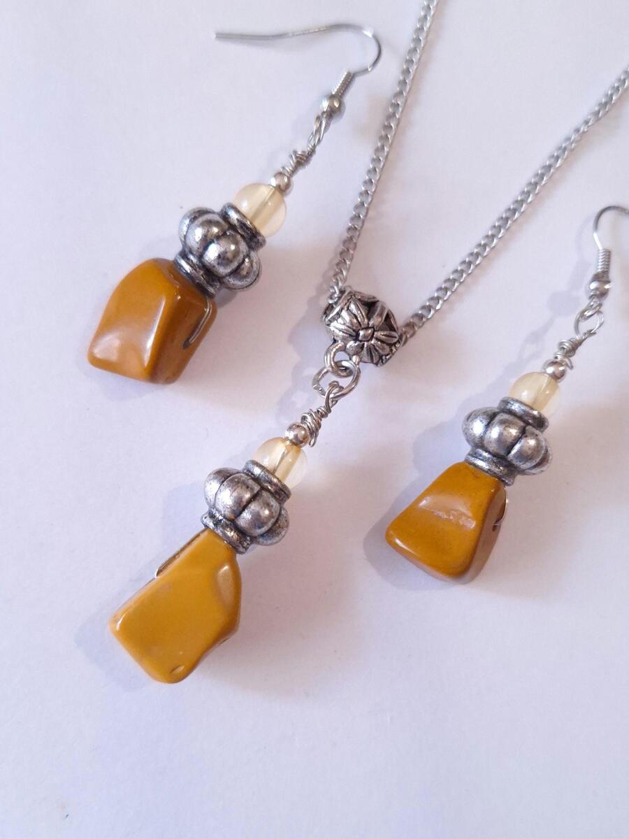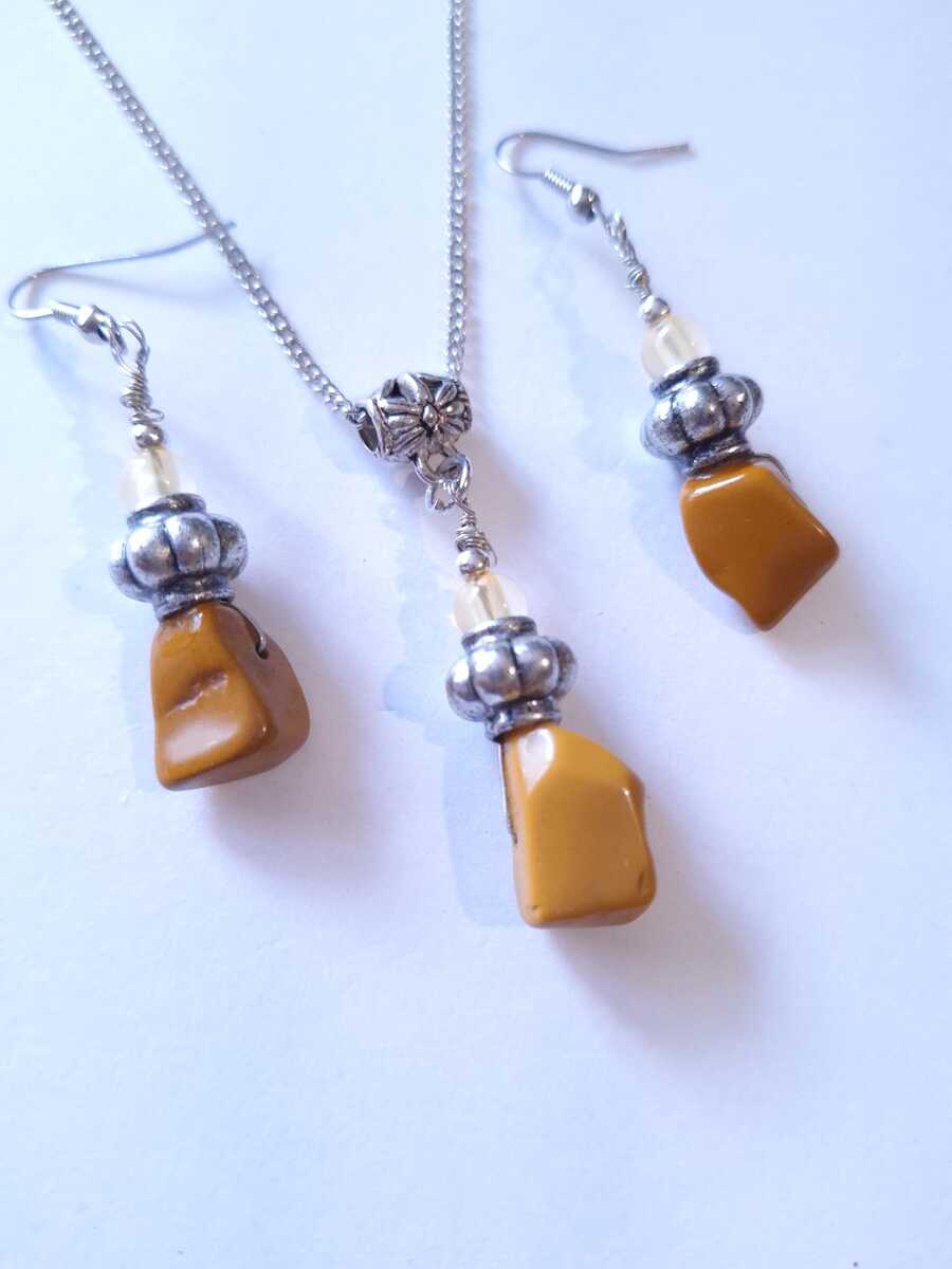 Beautiful Set Antique style Mookaite Jasper necklace and earrings . Beautiful necklace and earrings with natural shape yellow ochre Mookaite Jasper. Boho necklace . Bohemian necklace and earrings . Victorian necklace and earrings .