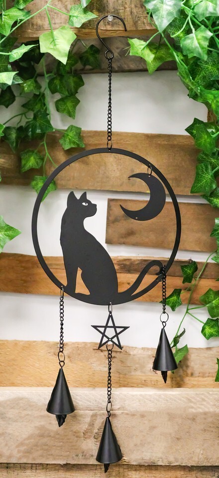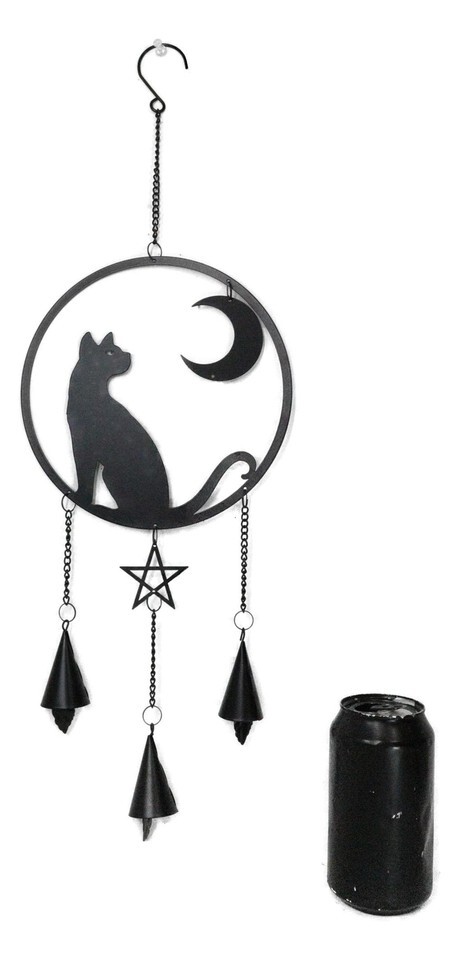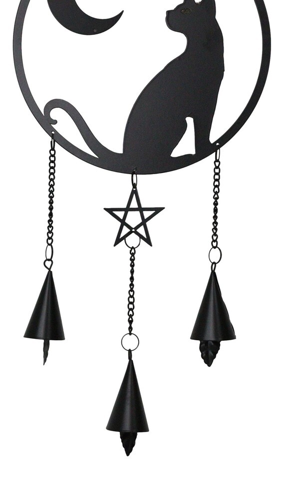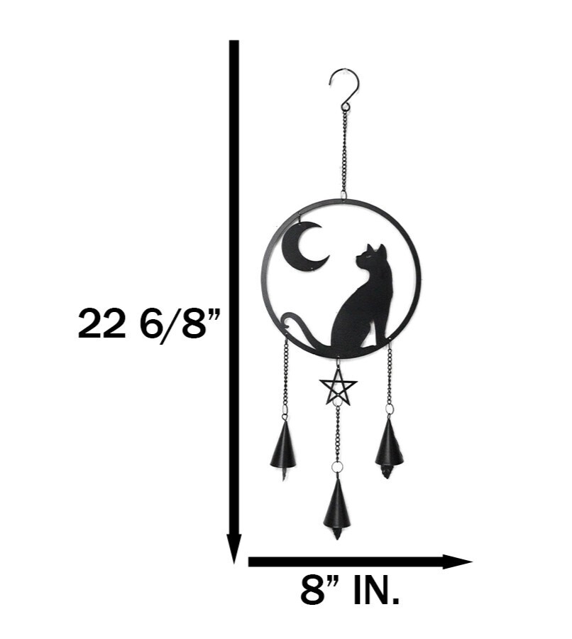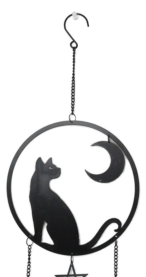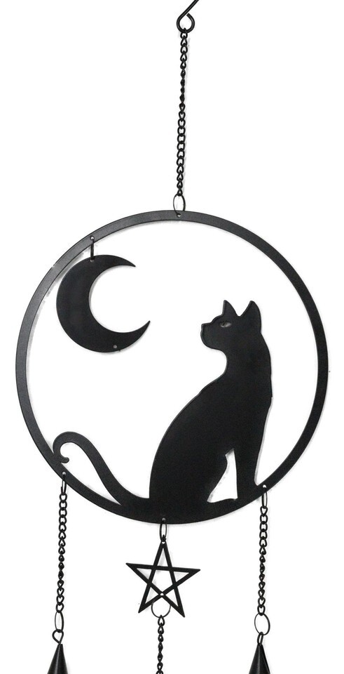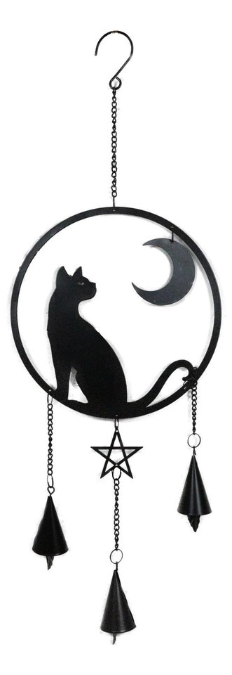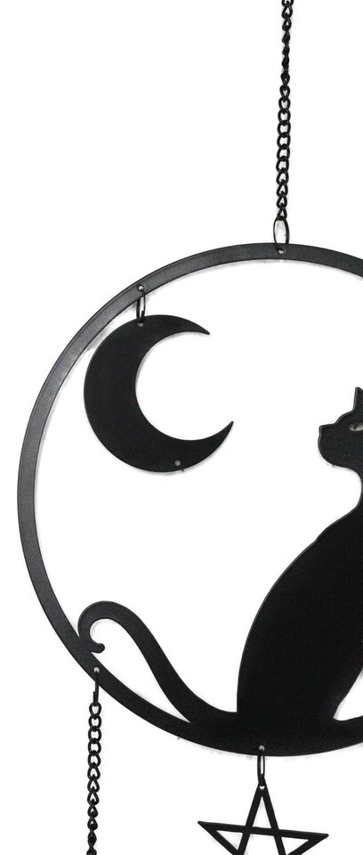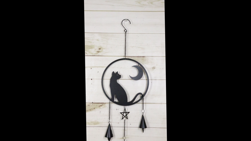 - Moon Gazer Black Cat with Crescent Moon Pentagram Wall Hanging Decoration Chime