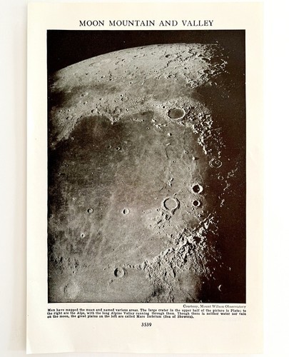 Primary image for Moon Mountain And Valley 1940s Plate Print Astronomy Solar System DWT12A