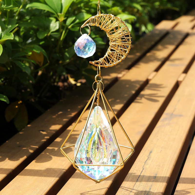 - Moon Star Crystal Suncatcher Hanging Chandelier Crystals Ball Prisms Window Sunc