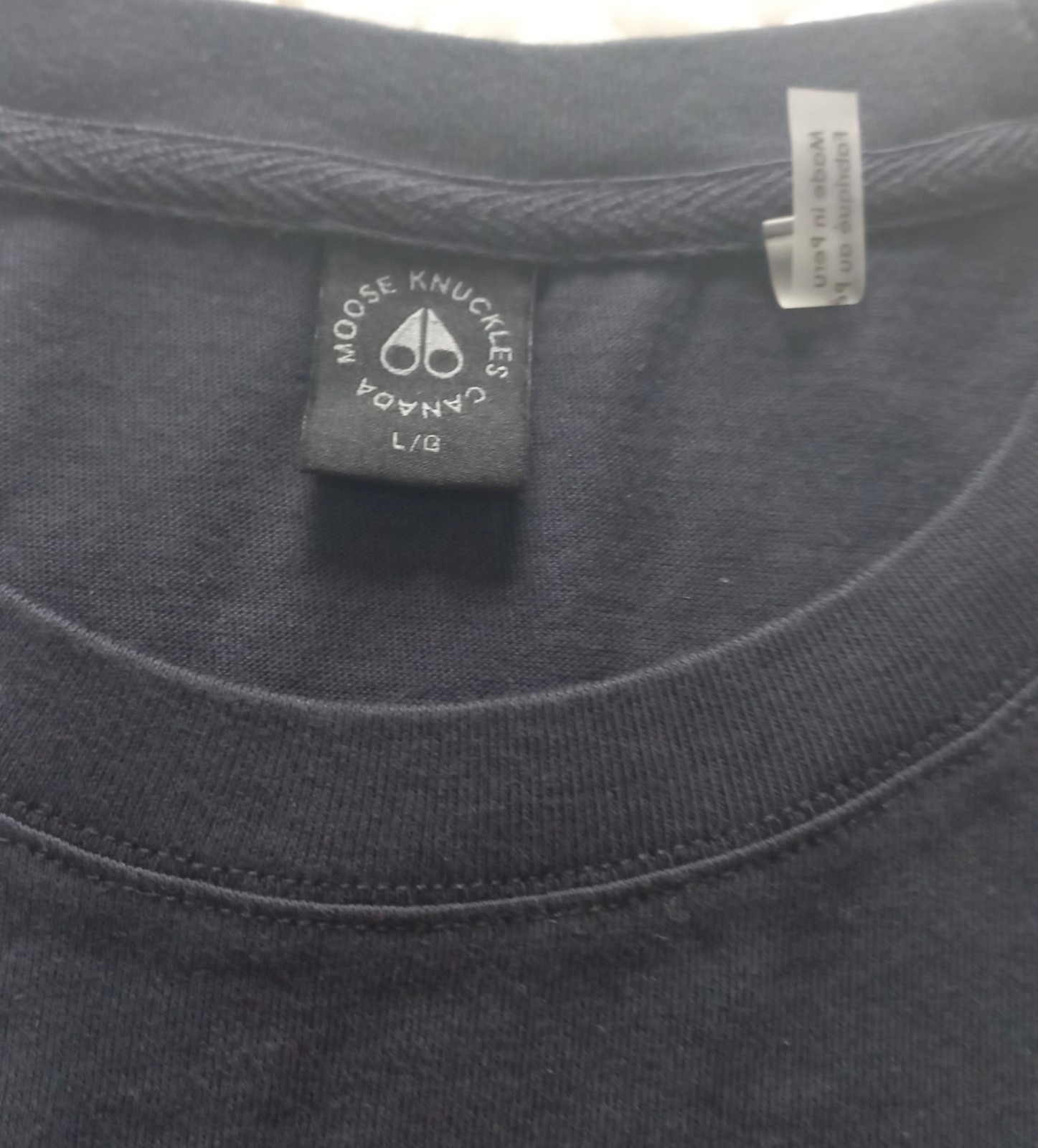 - Moose Knuckles Duluth Embroidered Logo Regular Fit Navy Blue T-Shirt Size L NWOT