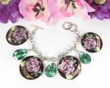 Primary image for MOP Shell PINK ROSE Vintage CHARM BRACELET Green Pear Gems Silvertone 7-8"