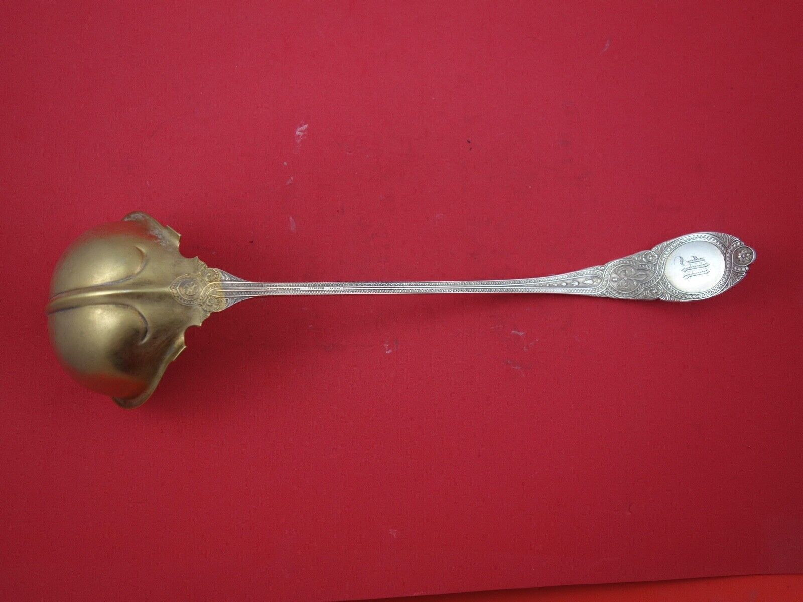 Sterling silver Soup Ladle, gold washed and frosted 13 1/2" in the pattern Moresque by Wendt. It is monogrammed (monos vary) and is in excellent condition.