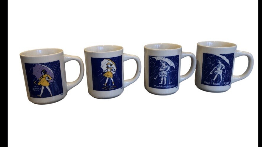 - Morton Salt 150 Years Coffee Cups Tea Mugs Retro Full Set Made In Japan 4 Pieces