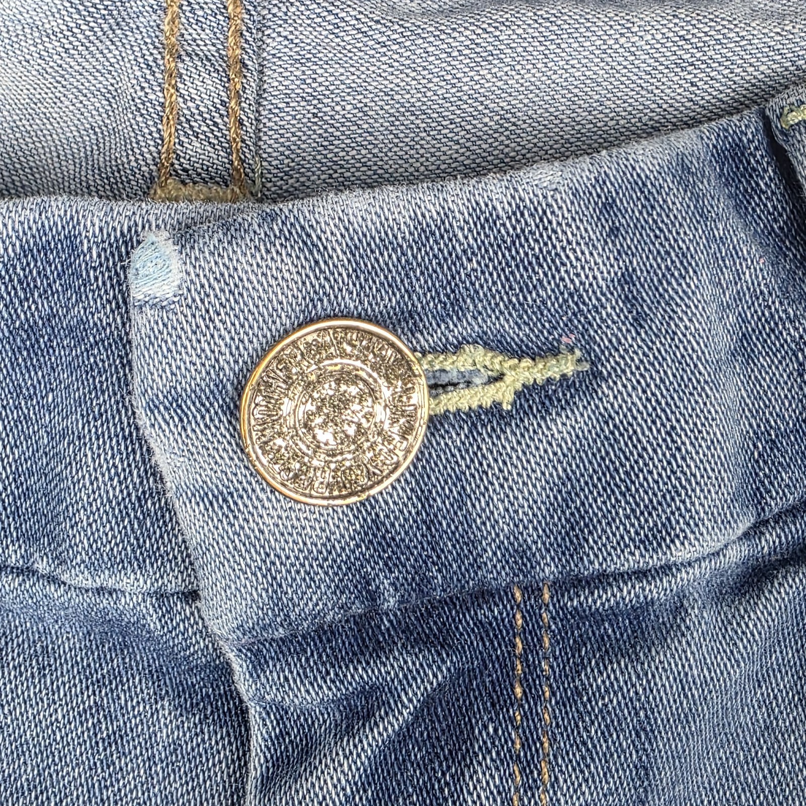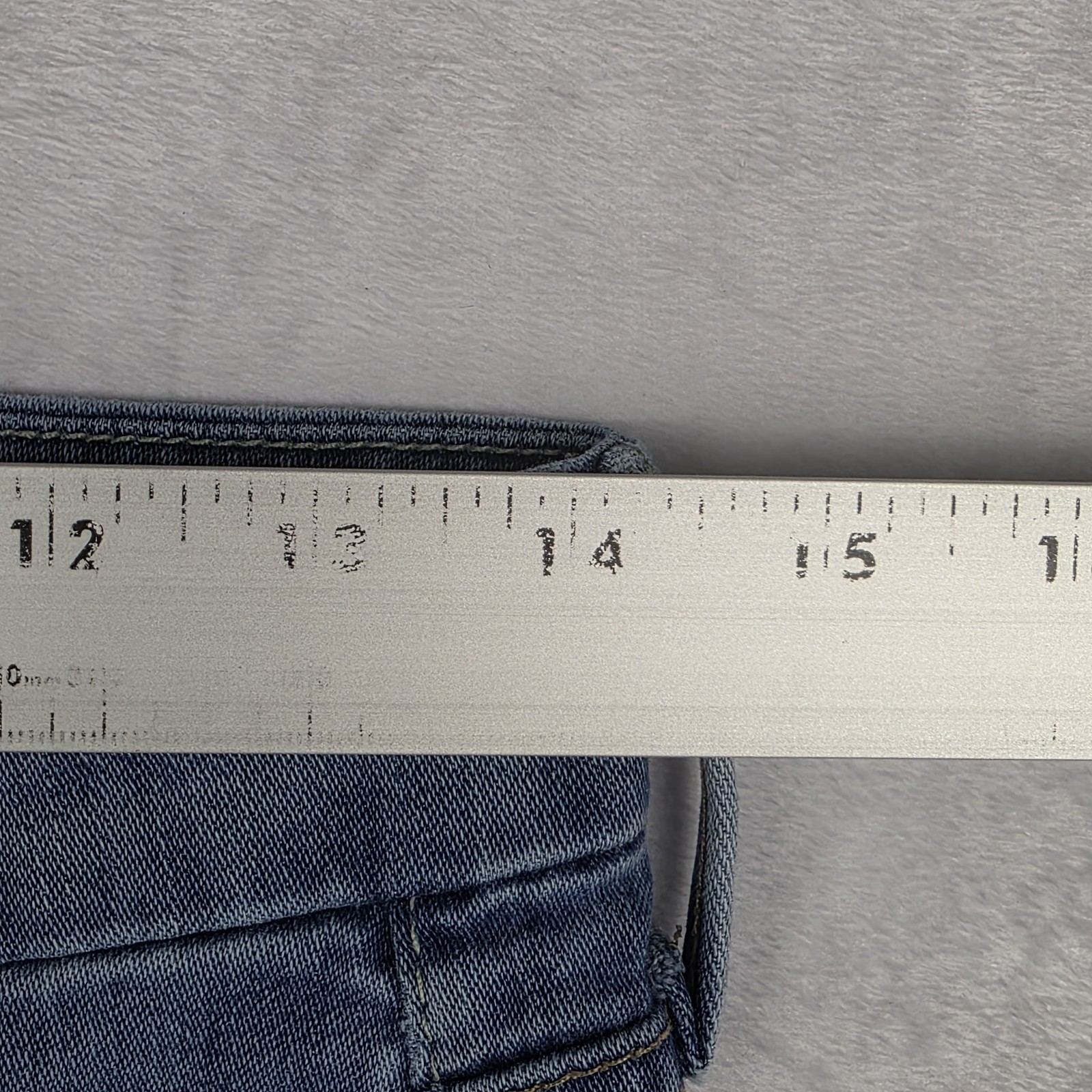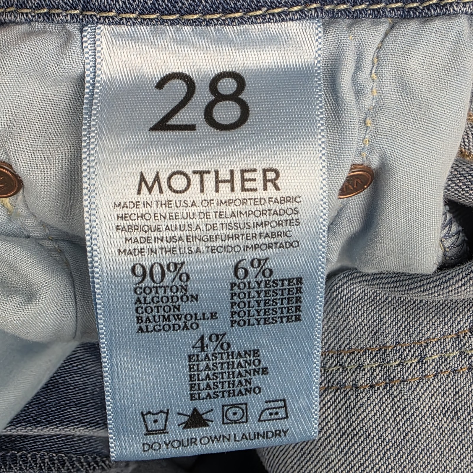 The Mother Jeans Women's Size 28 The Looker Crop in Leaving Paradise Blue Denim Pants are a stylish and versatile addition to any woman's wardrobe. Made from a blend of polyester, spandex, and cotton, these low-rise jeans feature a solid blue color with a medium wash. The cropped style and 25.5-inch inseam make them perfect for showcasing your favorite footwear while the regular fit ensures comfort and style. With a 5-pocket design, coin pocket, and logo accents, these jeans are both fashionable and functional, suitable for any season. Perfect for everyday wear or a night out in the city, these Mother Jeans are a must-have for any denim lover.