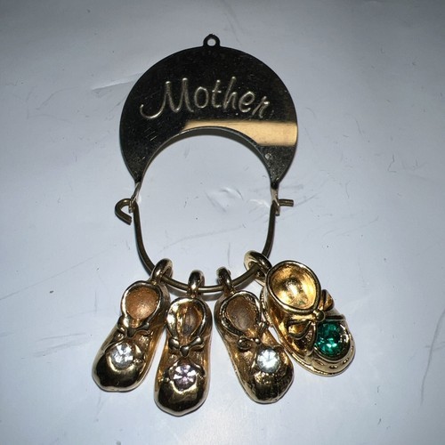 Mother's Charm 80’s VTG Holder Gold Tone W/ 4 Birthstones