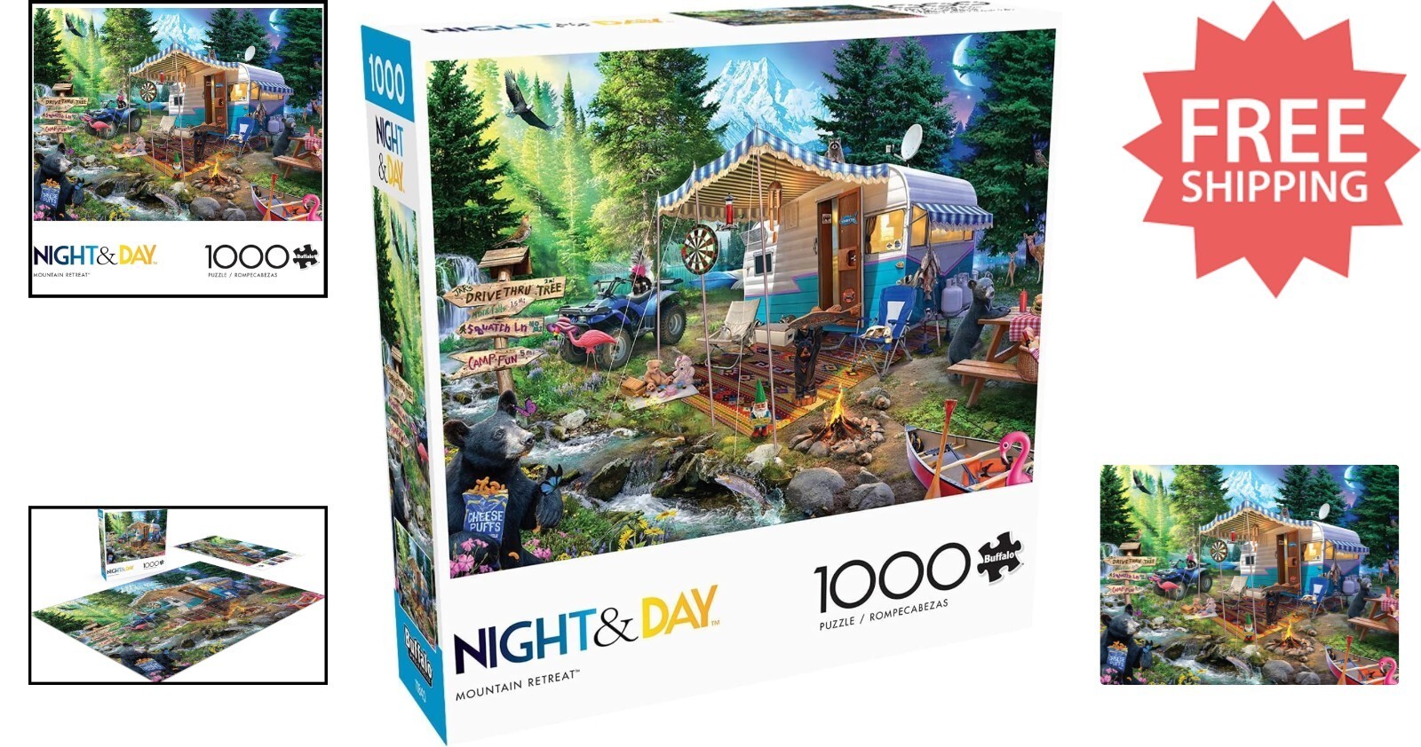Enjoy the perfect challenge with this 1000-piece jigsaw puzzle, measuring 26.75" x 19.75"?ideal for a rewarding single-night activity for family, friends, or yourself. Crafted in the USA by Buffalo Games, it features the vibrant "Mountain Retreat" scene from the Night Day Series, capturing the lively spirit of outdoor adventure from dawn to dusk. This puzzle promotes focus, relaxation, and quality time, complemented by a full-color reference poster for easy assembly. Its eco-friendly design and precision-cut pieces ensure a satisfying experience. A thoughtful gift for puzzle enthusiasts and newcomers alike, this activity fosters mental stimulation and screen-free fun. To ensure fast and reliable delivery, we work with multiple fulfillment partners and suppliers. Depending on availability and location, your order may ship from different warehouses or arrive in packaging that varies from item to item. Tracking details are typically provided shortly after shipment, and customer satisfaction remains our top priority. Please note that due to carrier policies and regional regulations, certain items may not be eligible for delivery to specific states or territories.