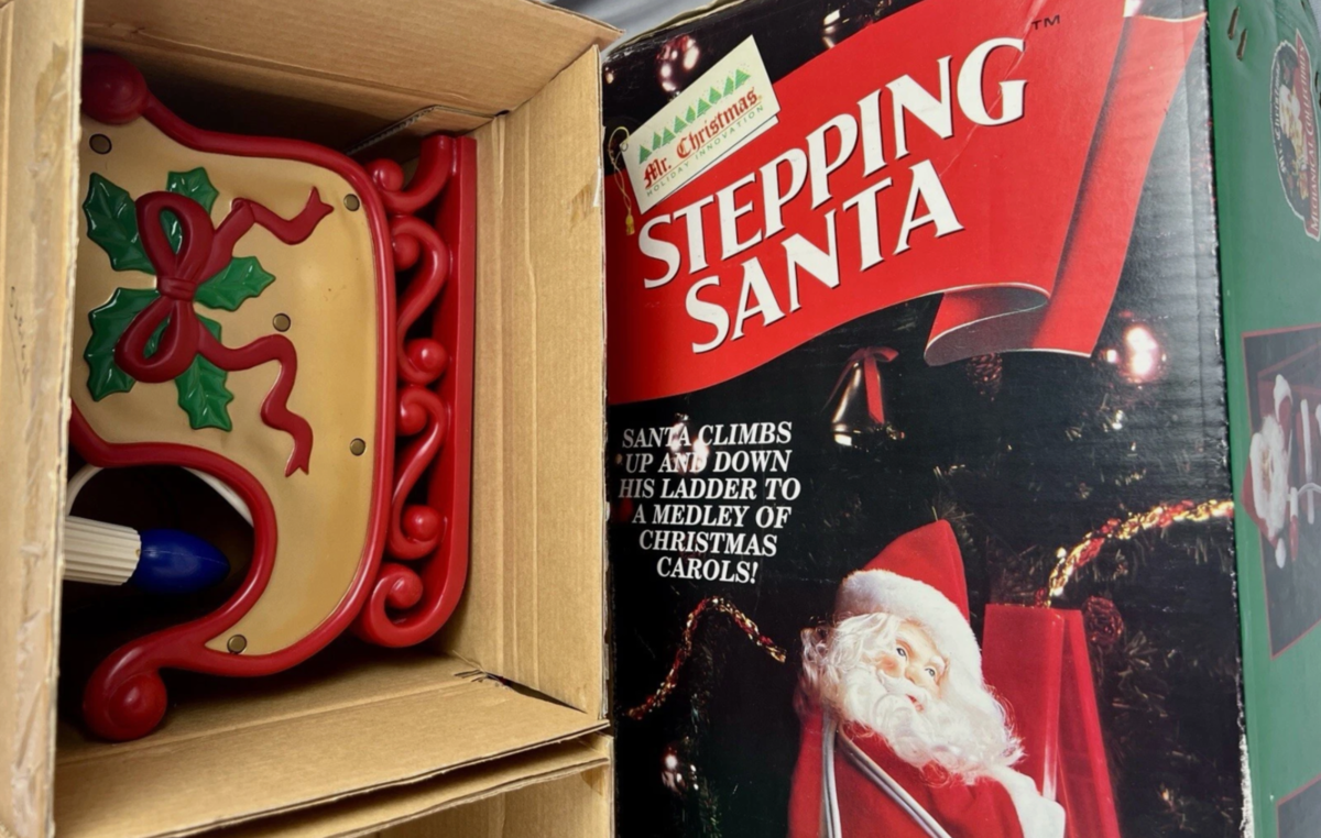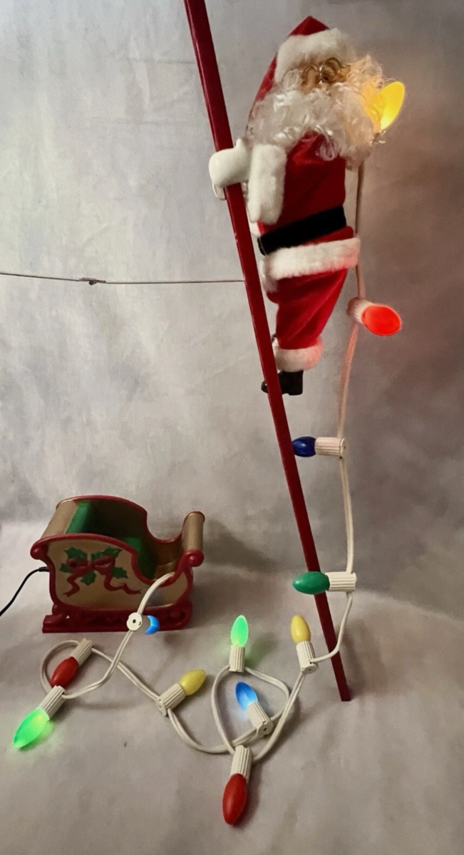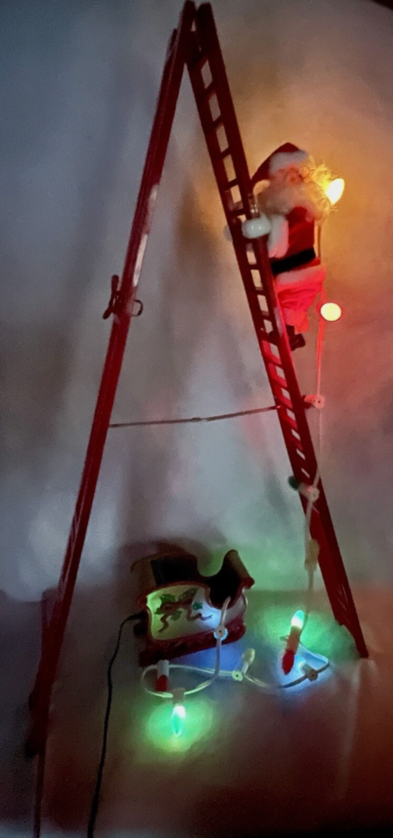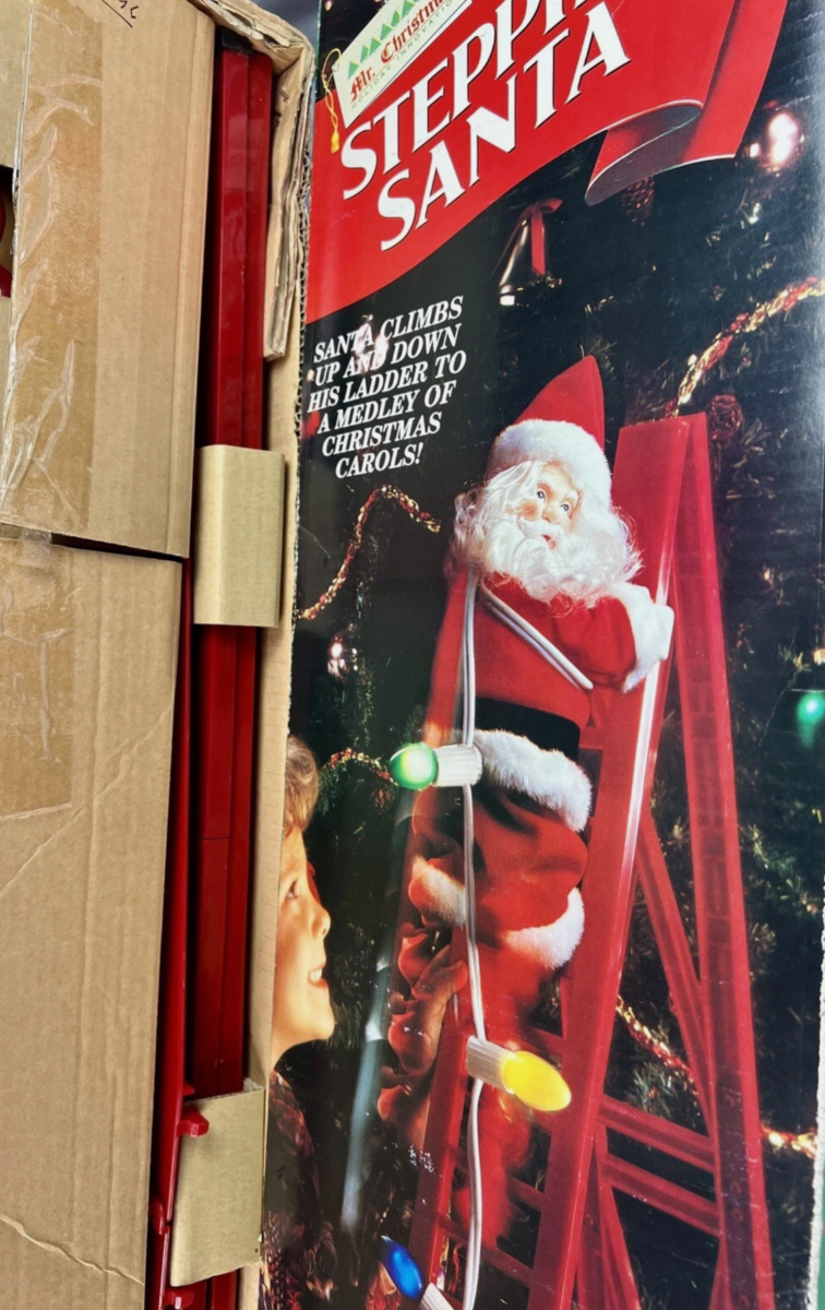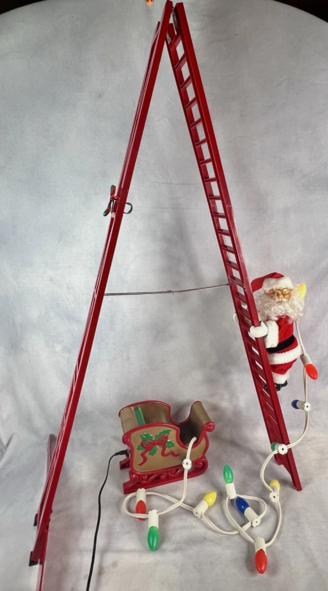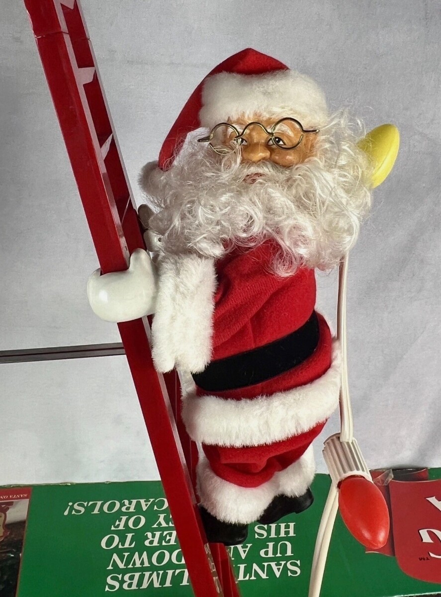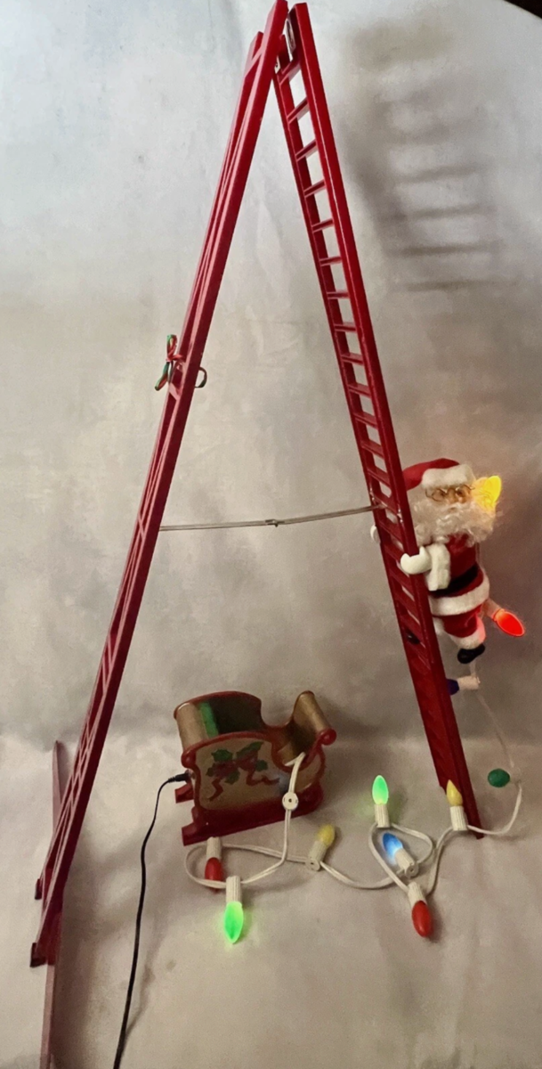 Mr Christmas Stepping Santa Ladder Climbing Animated Musical Lights Works Vtg