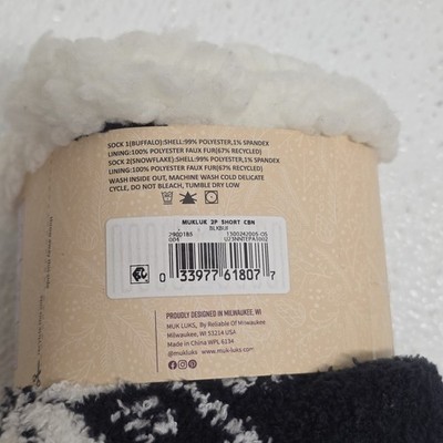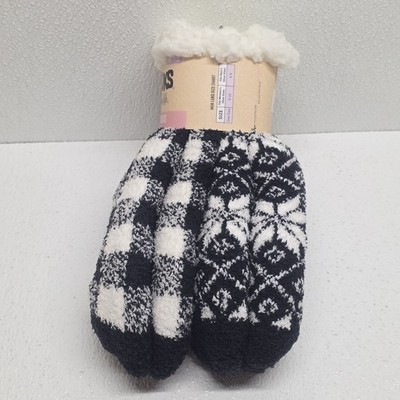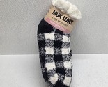Muk Luks Cabin Slipper Sock 2 Pair Women's Short Socks Non Skid Size 6-10 Black White Check Snowflake. Images show actual item that will ship.