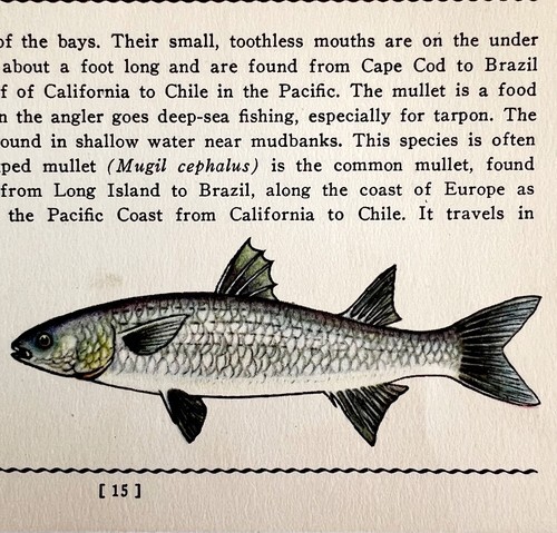 Mullet 1939 Salt Water Fish Gordon Ertz Color Plate Print Antique PCBG19