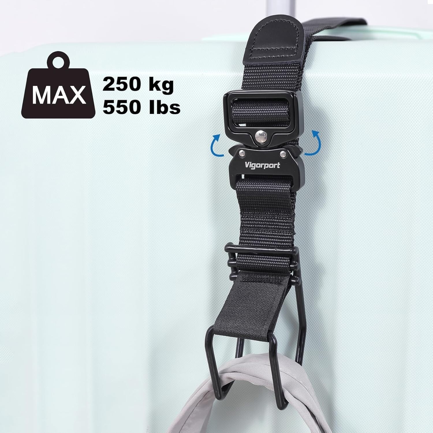 - Multi-Adjustment Luggage Hook Strap with Strong J Hook – Secure Your Bags Easily
