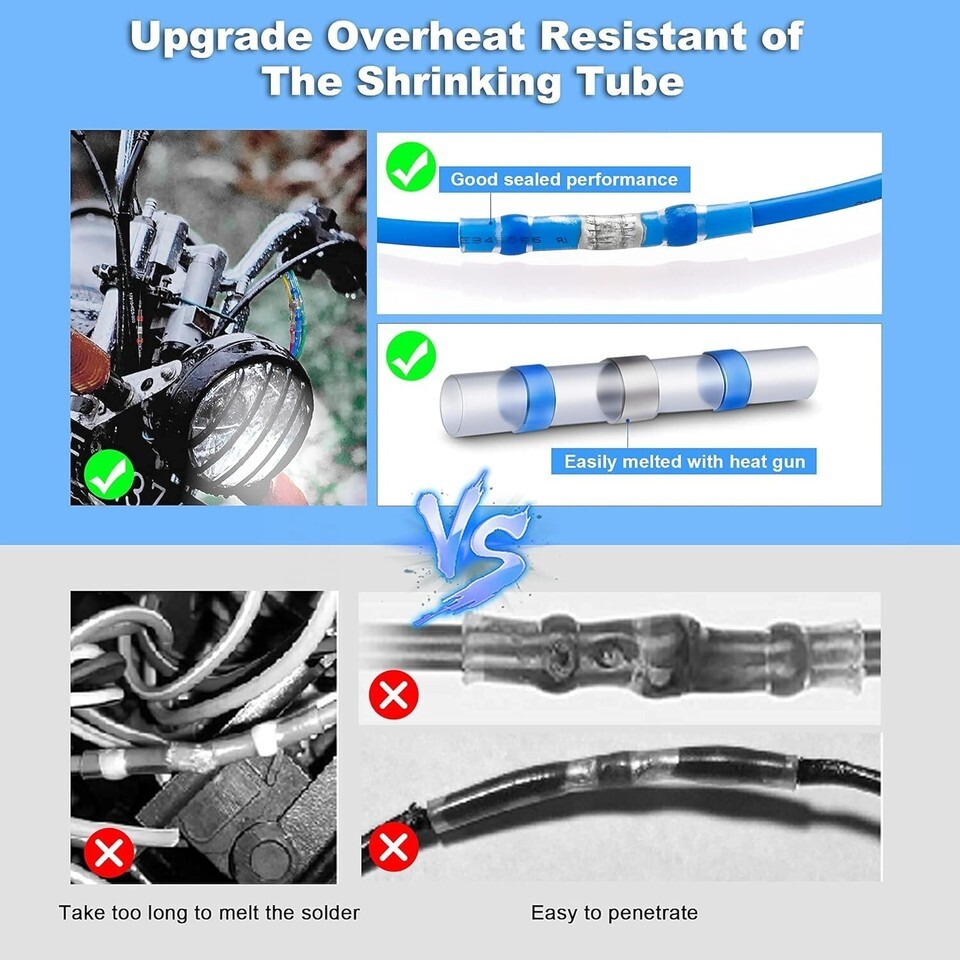 High Temperature Proof: Crafted from exclusive materials, our butt connectors prevent the shrink tubing from melting before the solder ring effectively seals the connection.