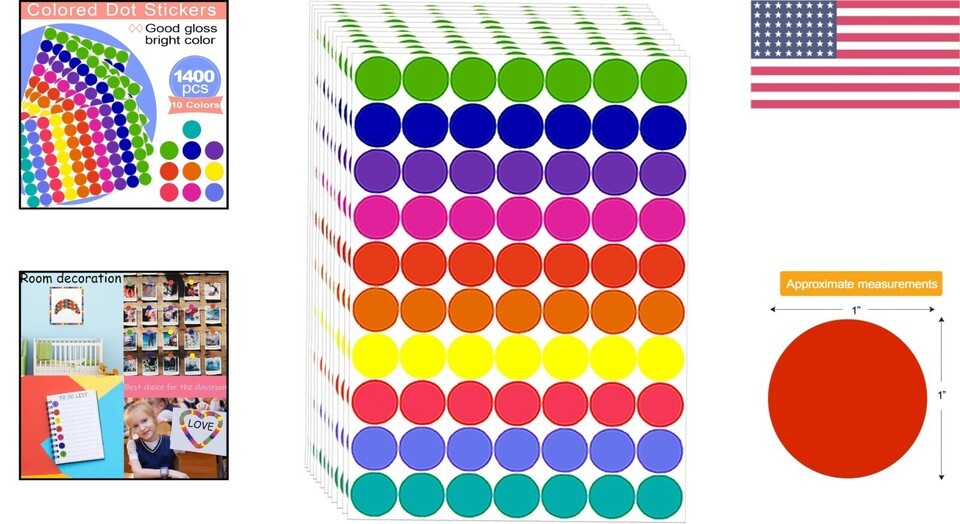 Multi-Use 1400 PCS Color Dot Stickers - Ideal for Organizing Creative Fun ? ? ? ? ? ? ? ? ? ? ? ? ? ? ? ? Multi-Use Color Dot Stickers 1400 PCS Color Dot Stickers - Ideal for Organizing Creative Fun Transform your organization and unleash your creativity with our exquisite collection of Multi-Use Color Dot Stickers, featuring 10 vibrant colors and a substantial 1400-piece package. Each sheet comes with 70 colorful stickers, ensuring you have plenty to promote fun and efficiency in any setting. Key Features: Vibrant Variety: Comes with an impressive selection of 10 bright colors, perfect for a multitude of uses. Generous Quantity: Enjoy 1400 stickers in total, artfully packaged in 20 sheets. Perfect Size: Each round dot sticker measures 1 inch in diameter, just the right size for any project. Endless Applications: Ideal for coding, sealing envelopes, rewarding achievements, and engaging in creative crafts. Easy to Write: Effortlessly write on them with pen, pencil, or marker for personalized coding and organization. Permanent Adhesive: Designed to stay firmly in place on all surfaces, including clothing; removes cleanly with no glue residue. Embrace Creativity and Organization: Great for toddlers and children to spark their imagination and enhance creative thinking. Perfect for adults and kids alike, making them suitable for offices, classrooms, and home projects. Utilize these colorful stickers in inventory management, sales pricing, art projects, education, and beyond. Why Choose Our Multi-Use Color Dot Stickers? Elevate your organization while providing a canvas for creativity with our Multi-Use Color Dot Stickers. Whether you're prioritizing tasks, decorating projects, or rewarding achievements, these stickers combine function with fun. The permanent adhesive ensures they adhere to any surface, while the easy removal leaves no residue behind, making them a wise choice for any setting. Don?t miss out on the chance to enhance your organizational tools?secure your pack of Multi-Use Color Dot Stickers today! Shipping Free Fast Shipping - We offer free shipping to most of the USA with a normal delivery time of 3-7 days. However, due to the current situation, additional delivery time (up to 3 weeks) may be required for some items. Alternative Carriers - We may use alternative carriers (e.g. USPS, FedEx, UPS, etc.) to ensure your package arrives safely and on time. Due to the use of multiple carriers, we are unable to provide a tracking number automatically. Handling Time - Orders are processed and shipped within 1-2 business days of receiving cleared payment. Shipping Restrictions - Shipping to Alaska, Hawaii, Puerto Rico, Guam, and other US territories may incur shipping charges or delivery restrictions. Please contact us before ordering, or your order can be refunded/cancelled. State Restrictions - There may be restrictions based on your state of purchase. For example, certain items may not be shipped to California due to state regulations. Contact for Tracking Updates - If you require tracking updates or have any concerns about the delivery of your order, please feel free to contact us, and we will be happy to assist you. Return 30-Day Hassle-Free Returns - We want you to be completely satisfied with your purchase. If you are not, you can return the item within 30 days of receiving it for a full refund or exchange. Easy Return Process - To start a return, simply contact us and we will provide you with a prepaid return shipping label and detailed instructions. Restocking Fee - There are no restocking fees for returns. However, the buyer is responsible for return shipping costs if the return is not due to a seller's error. Refund Processing Time - Refunds will be processed within 5 business days of receiving the returned item in its original condition. Payment We accept all major credit cards, PayPal, and Apple Pay for your convenience. Your payment information is secure and encrypted to ensure a safe and seamless transaction. Please complete your payment within 3 days of purchase to avoid any delays in shipping. Feedback Your feedback is extremely important to us. We strive to provide the best products and customer service possible. If you are satisfied with your purchase, please take a moment to leave us a positive review. If you have any concerns or issues with your order, please contact us before leaving negative feedback. We are committed to resolving any problems and ensuring your satisfaction. Contact Us If you have any questions or concerns, please feel free to reach out to our customer support team. You can contact us through the messaging system. We are available Monday to Friday, 9:00 am to 5:00 pm EST, and we will do our best to respond to your inquiry within 24 hours. Buy it now and enjoy a pleasant shopping experience! UPC: Not Set MPN: Colored_Dot_Stickers Unit Quantity: 1400 PCS Brand: Unbranded Theme: Colored Dot Stickers Type: Sticker Book Color: Multi-Color Country/Region of Manufacture: Not Set Unit Type: oz Handmade: Not Set