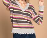 โข Eye-Catching Variegated Stripes: The multi-colored stripes create a dynamic and vibrant pattern, making this sweater perfect for a lively and stylish appearance.