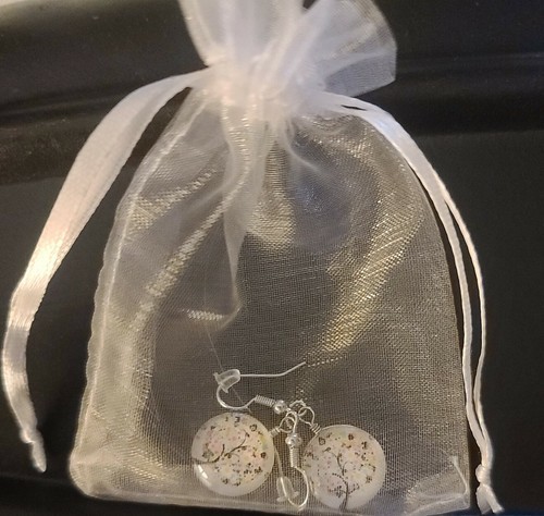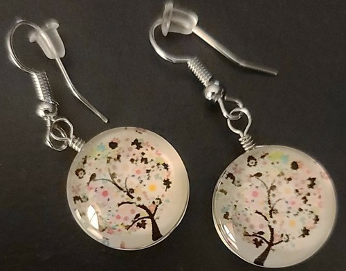 This sale is for one (1) pair of Tree Theme Earrings Alloy hardware is silver in color Clear ~ acrylic ball with a "Multicolored Flower Design" on both sides Dangle/drop earrings Earrings hang approximately 1.5" Ball measure approximately .75" wide @ widest point Safe and durable ~ not easy to break ~ rust or deform Lightweight and comfortable to wear Comes in a drawstring cloth sack/bag Earrings are brand new ~ never worn Please view photos for a good description of this item Thank you!