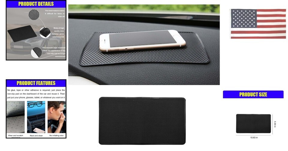 Multifunction Car Anti-Slip Mat, Rotatable Anti Skid Dashboard Pad Grey ? ? ? ? ? ? ? ? ? ? ? ? ? ? ? ? Multifunction Car Anti-Slip Mat - Rotatable Anti Skid Dashboard Pad - Elegant Grey Finish Features: Material: Crafted from high-quality silicone, this car instrument panel non-slip mat is soft to the touch, environmentally friendly, and heat and cold resistant, ensuring outstanding anti-slip performance. Easy to Use: Simply place the mat on your dashboard, armrest, or any flat surface without the need for tape or glue ? it adheres seamlessly. Strong Gripping: Engineered for excellence, this anti-slip pad securely holds your items in place, preventing spills and clutter during bumpy rides or sudden stops. Easy to Clean: Maintain the mat effortlessly; simply rinse or wipe off with water, then dry to restore its adhesive properties. It leaves no residue when removed. Wide Application: Measuring 10.6 x 5.9 inches, this versatile pad is suitable for all vehicles ? cars, trucks, SUVs, boats, and more. Perfect for organizing mobile phones, cigarettes, coins, glasses, keys, cups, pens, and daily essentials. Benefits: Enhances organization and safety while driving. Durable material that withstands daily use. Reusable and easy to maintain. Versatile usage beyond vehicles; perfect for offices, kitchens, and bathrooms. Why Choose Our Multifunction Car Anti-Slip Mat? Elevate your driving experience with our Multifunction Car Anti-Slip Mat ? a blend of practicality and elegance. Its construction guarantees reliable performance while preserving your car's aesthetics. Whether navigating through daily commutes or adventurous road trips, secure your belongings with confidence and style. Transform your vehicle's interior today ? order your Multifunction Car Anti-Slip Mat now! Shipping Free Fast Shipping - We offer free shipping to most of the USA with a normal delivery time of 3-7 days. However, due to the current situation, additional delivery time (up to 3 weeks) may be required for some items. Alternative Carriers - We may use alternative carriers (e.g. USPS, FedEx, UPS, etc.) to ensure your package arrives safely and on time. Due to the use of multiple carriers, we are unable to provide a tracking number automatically. Handling Time - Orders are processed and shipped within 1-2 business days of receiving cleared payment. Shipping Restrictions - Shipping to Alaska, Hawaii, Puerto Rico, Guam, and other US territories may incur shipping charges or delivery restrictions. Please contact us before ordering, or your order can be refunded/cancelled. State Restrictions - There may be restrictions based on your state of purchase. For example, certain items may not be shipped to California due to state regulations. Contact for Tracking Updates - If you require tracking updates or have any concerns about the delivery of your order, please feel free to contact us, and we will be happy to assist you. Return 30-Day Hassle-Free Returns - We want you to be completely satisfied with your purchase. If you are not, you can return the item within 30 days of receiving it for a full refund or exchange. Easy Return Process - To start a return, simply contact us and we will provide you with a prepaid return shipping label and detailed instructions. Restocking Fee - There are no restocking fees for returns. However, the buyer is responsible for return shipping costs if the return is not due to a seller's error. Refund Processing Time - Refunds will be processed within 5 business days of receiving the returned item in its condition. Payment We accept all major credit cards, PayPal, and Apple Pay for your convenience. Your payment information is secure and encrypted to ensure a safe and seamless transaction. Please complete your payment within 3 days of purchase to avoid any delays in shipping. Feedback Your feedback is extremely important to us. We strive to provide the best products and customer service possible. If you are satisfied with your purchase, please take a moment to leave us a positive review. If you have any concerns or issues with your order, please contact us before leaving negative feedback. We are committed to resolving any problems and ensuring your satisfaction. Contact Us If you have any questions or concerns, please feel free to out to our customer support team. You can contact us through the messaging system. We are available Monday to Friday, 9:00 am to 5:00 pm EST, and we will do our best to respond to your inquiry within 24 hours. Buy it now and enjoy a pleasant shopping experience! UPC: NA Unit Quantity: 10.6'' x 5.9'' Compatible Devices: Mobile phones Package Dimensions: 27 x 15 CM Compatible Phone Models: All smart phones Color: Black Item model number: MAIYUE Manufacturer: MAIYUE Model: MAIYUE Mounting Type: Non-adhesive Materials sourced from: High-quality silicone Special Features: Anti-slip Item Weight: 46 grams Manufacturer Part Number: MAIYUE Universal Fitment: Yes