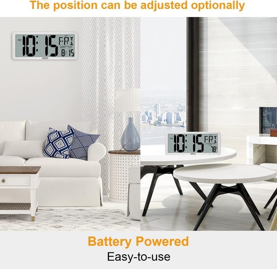 High contrast clear jumbo digits for easy reading from a distance at any angle.