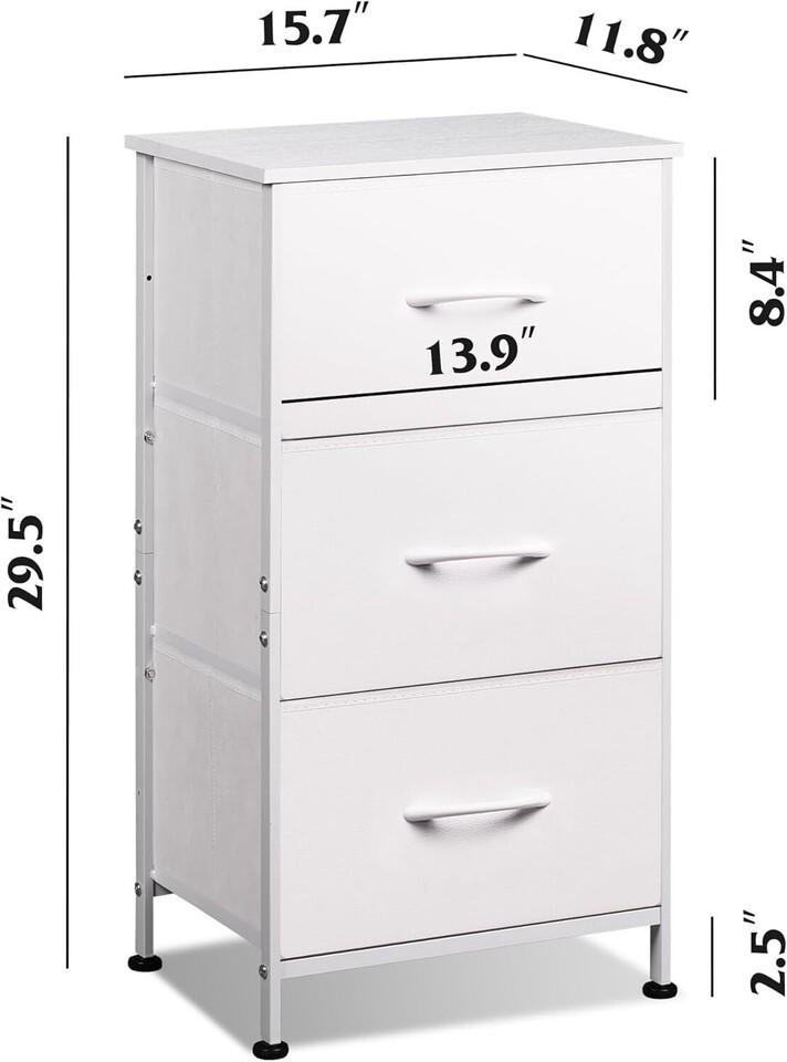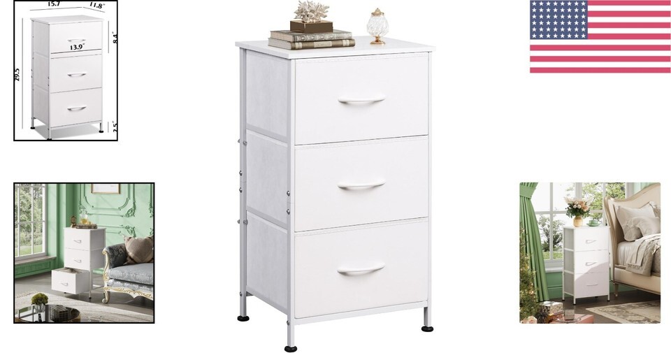 - Multipurpose 3-Drawer Storage Cabinet - Modern White Nightstand for Any Room