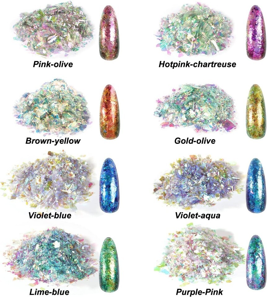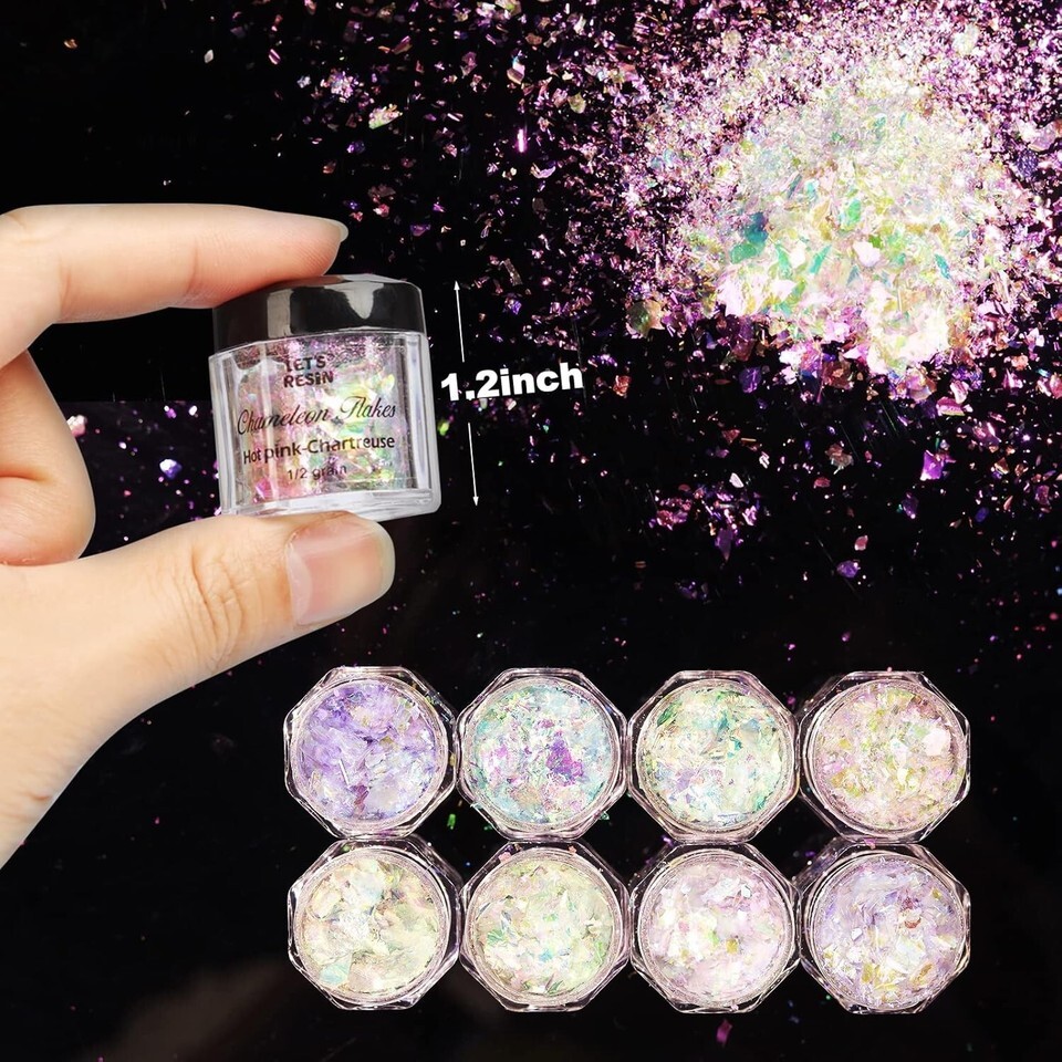 8 Color Chameleon Chunky Flakes: Each of the 8 vibrant colors comes in 0.5g packets (totaling 4g), ensuring you only need a sprinkle to achieve rich, vivid hues.