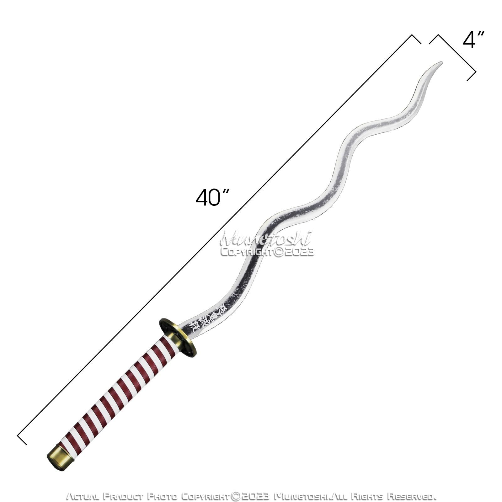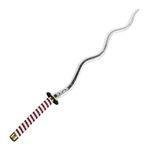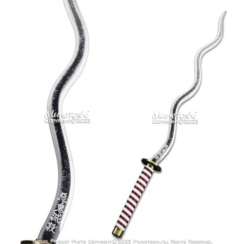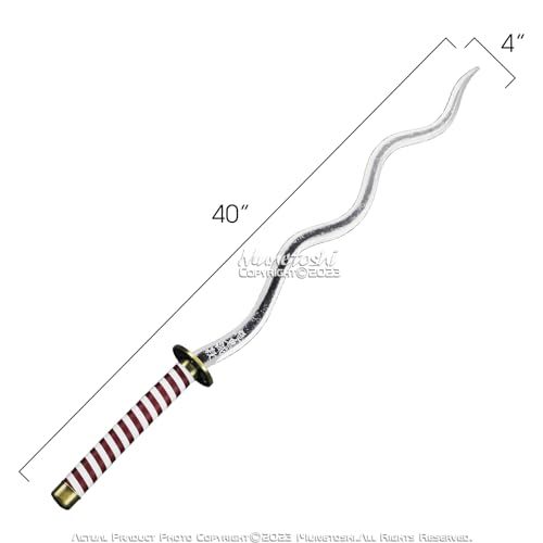Product description: Strike like a twin-headed reptile and put the squeeze on demons everywhere with a coil, when you take up the serpentine blade of Obanai?s nichirin katana! Coming in both his normal and powered up versions, you can truly embody the Serpent Breathing Hashira. The manga and anime-accurate decorations will be sure to impress at your next cosplay gathering. [Dimensions] Overall Length: 40.5? Blade Length: 28? Hilt Length: 11? Weight: 2.225 lb
