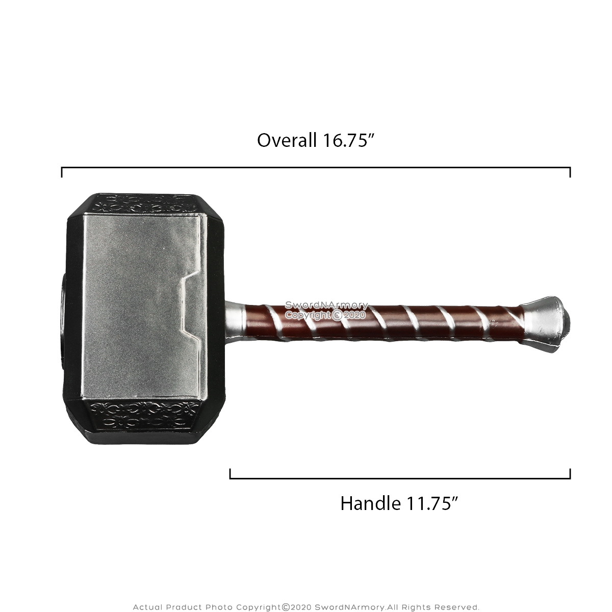 Do you want to hold this hammer? Do you want to know if you are worthy? Worthy of the power this hammer holds?Thor?s power! Become a Norse God with this highly detailed Mjollnir hammer. Standing in 17 inches in length and made with high-density foam this hammer makes you feel like the Norse God himself. This hammer has great detail and is made with an internal core to keep the item sturdy and can be used for events, parties, or just for fun. Feel the thunderous power of this magical foam hammer. Make it part of your collection today!