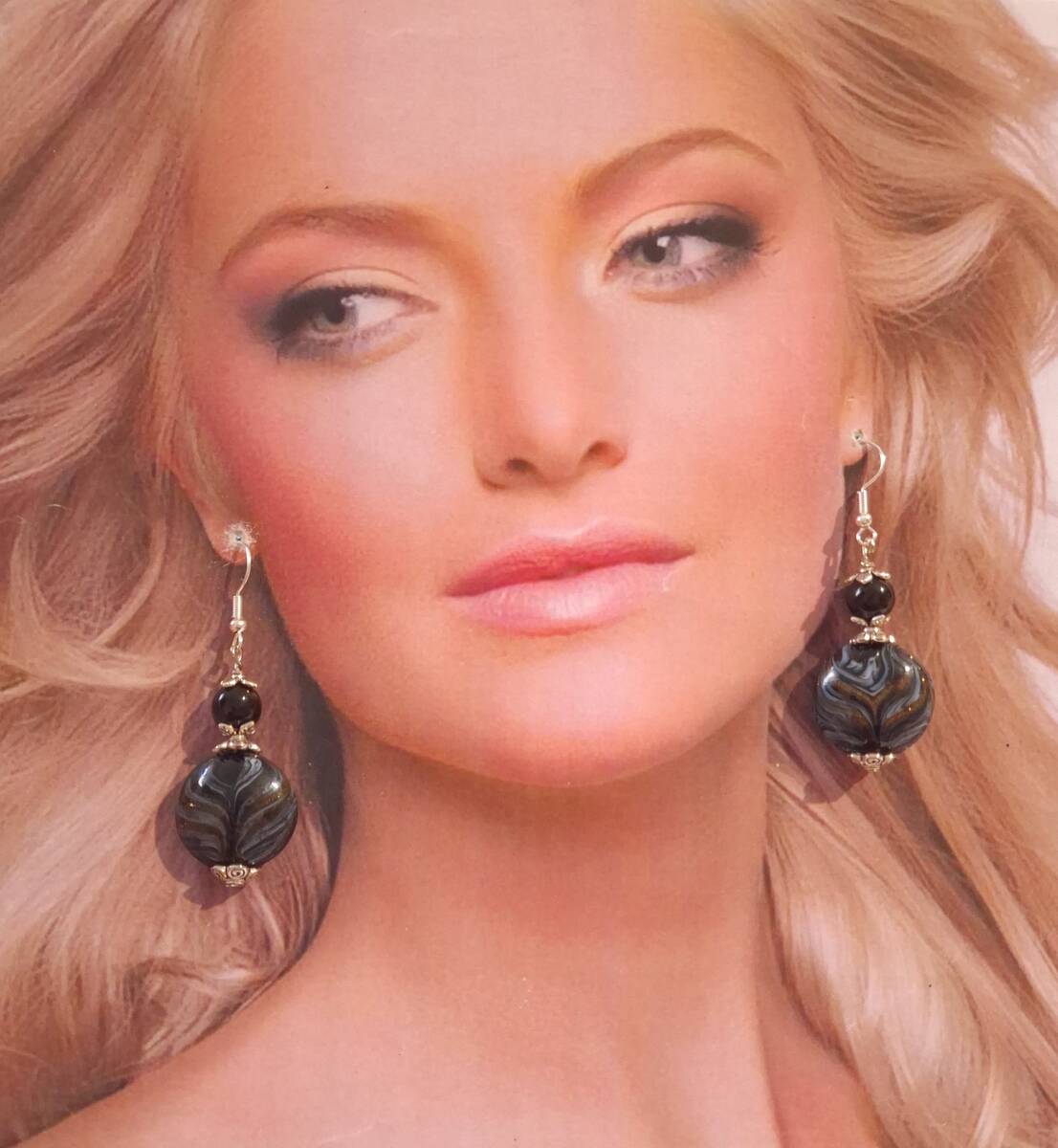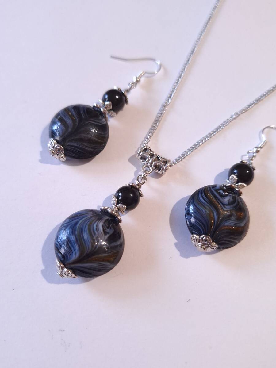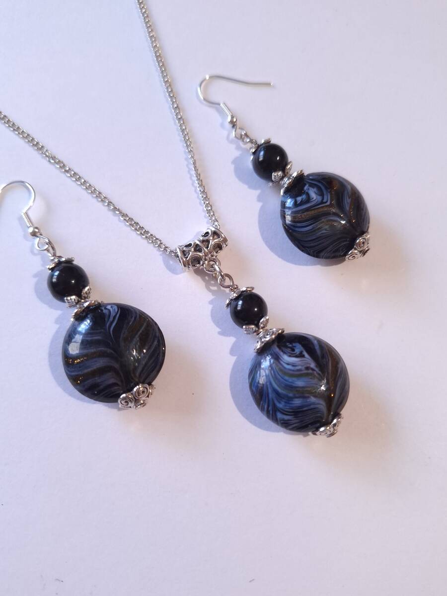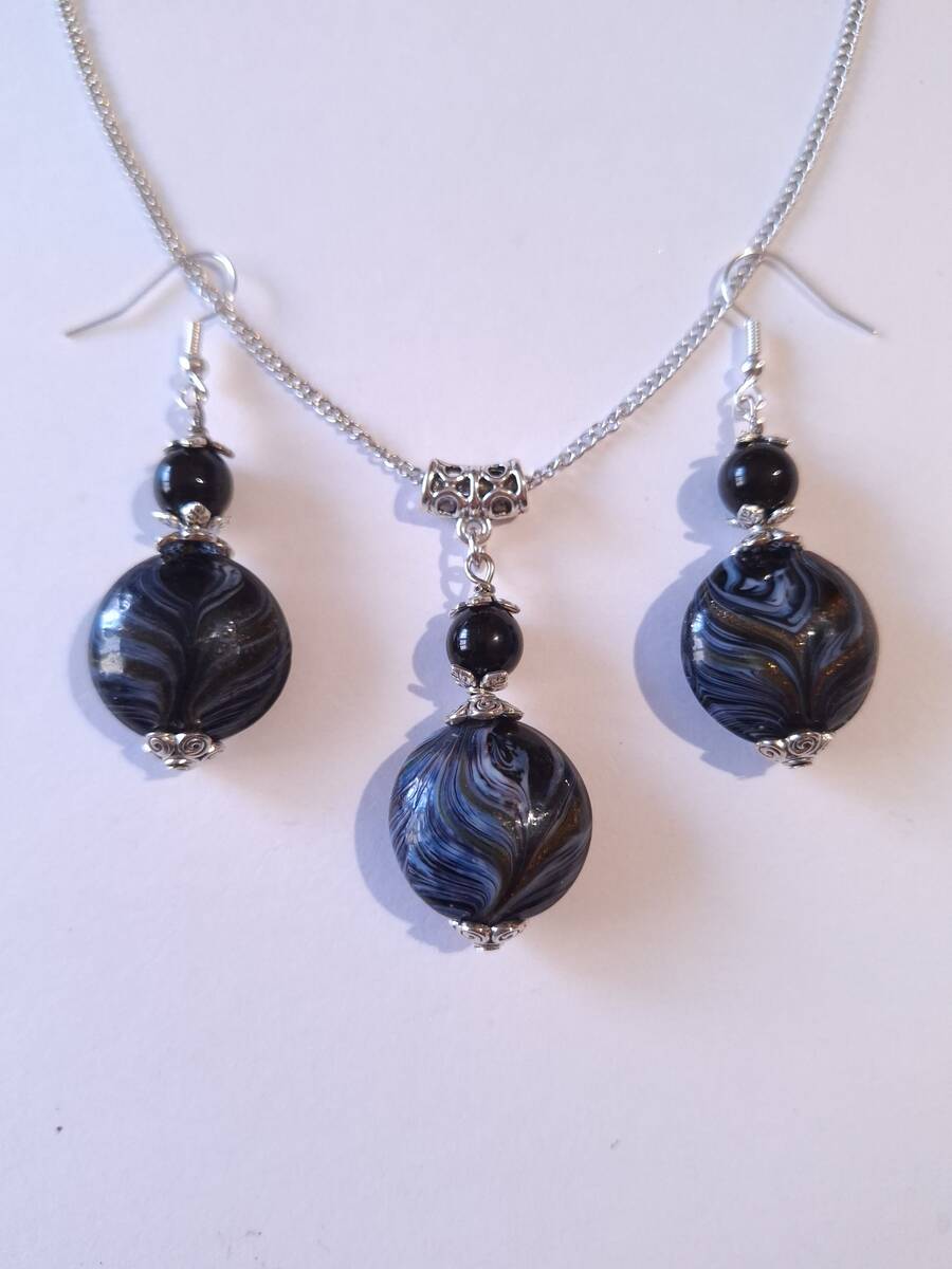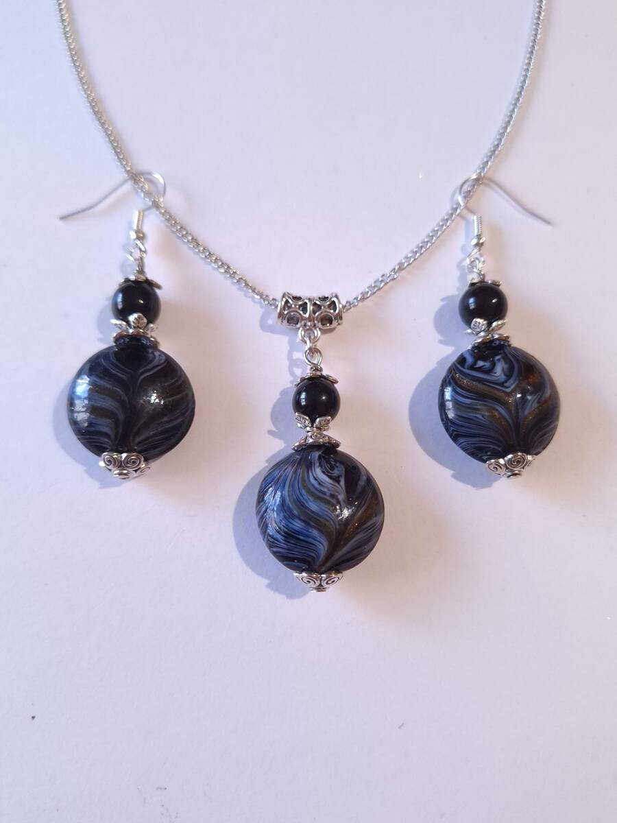 - Murano black silver jewelry set Boho Murano handmade glass jewelry set earrings