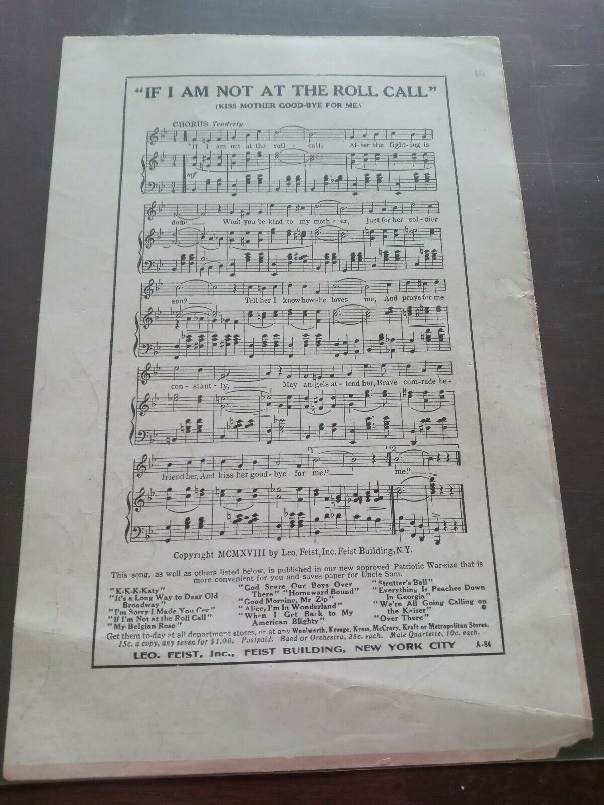 - My Belgian Rose War Edition Sheet Music WWI 1918 Reduced Size