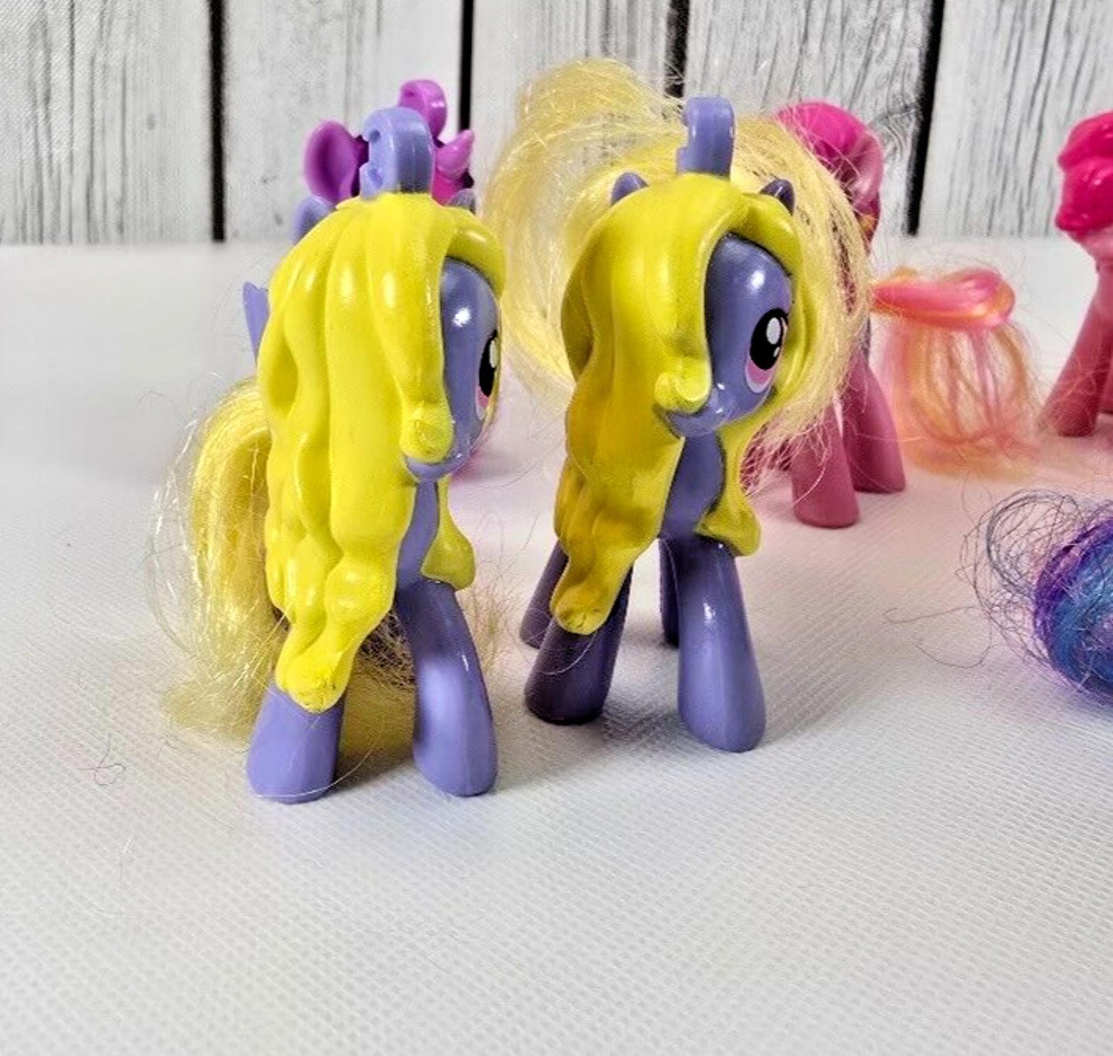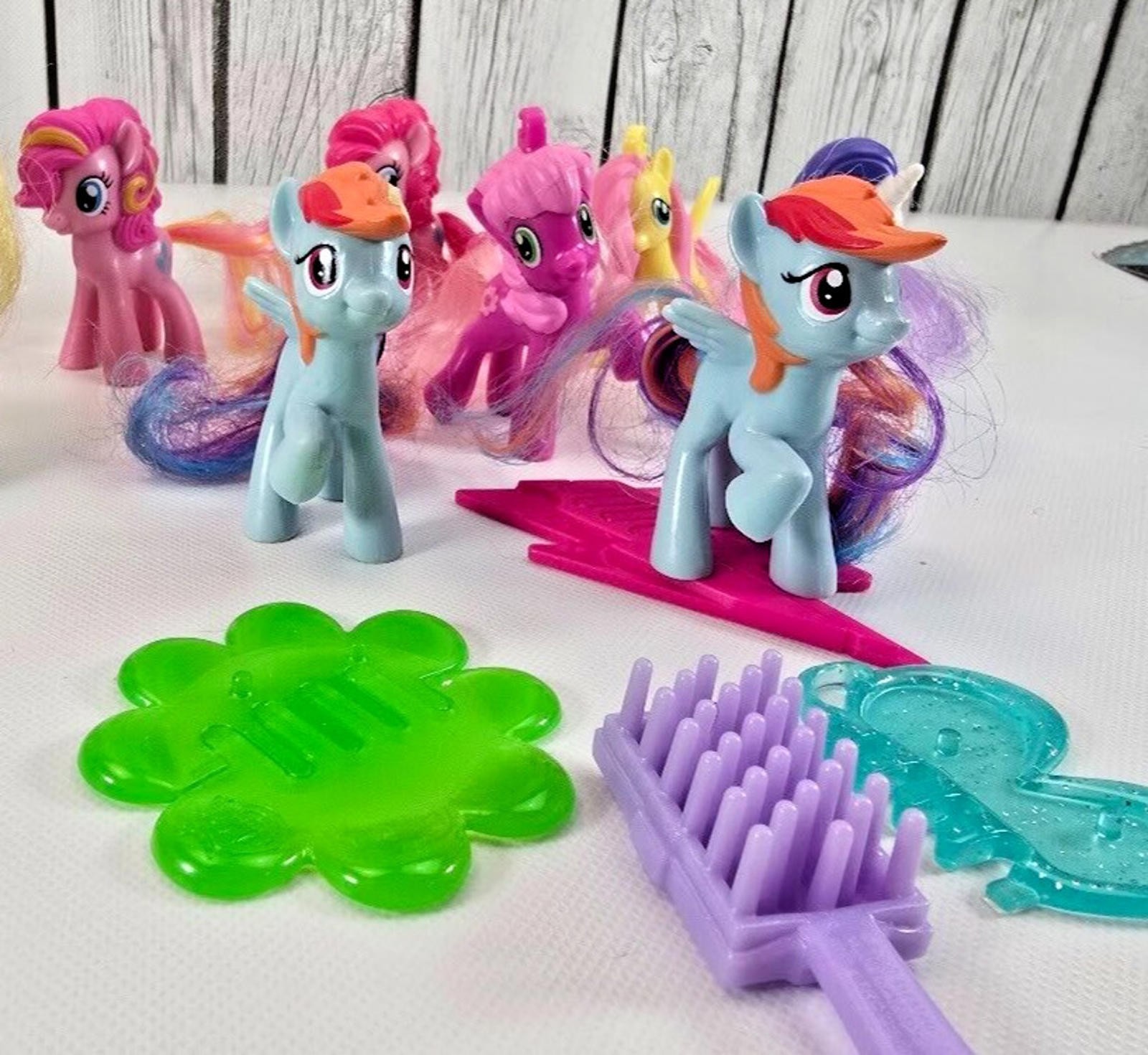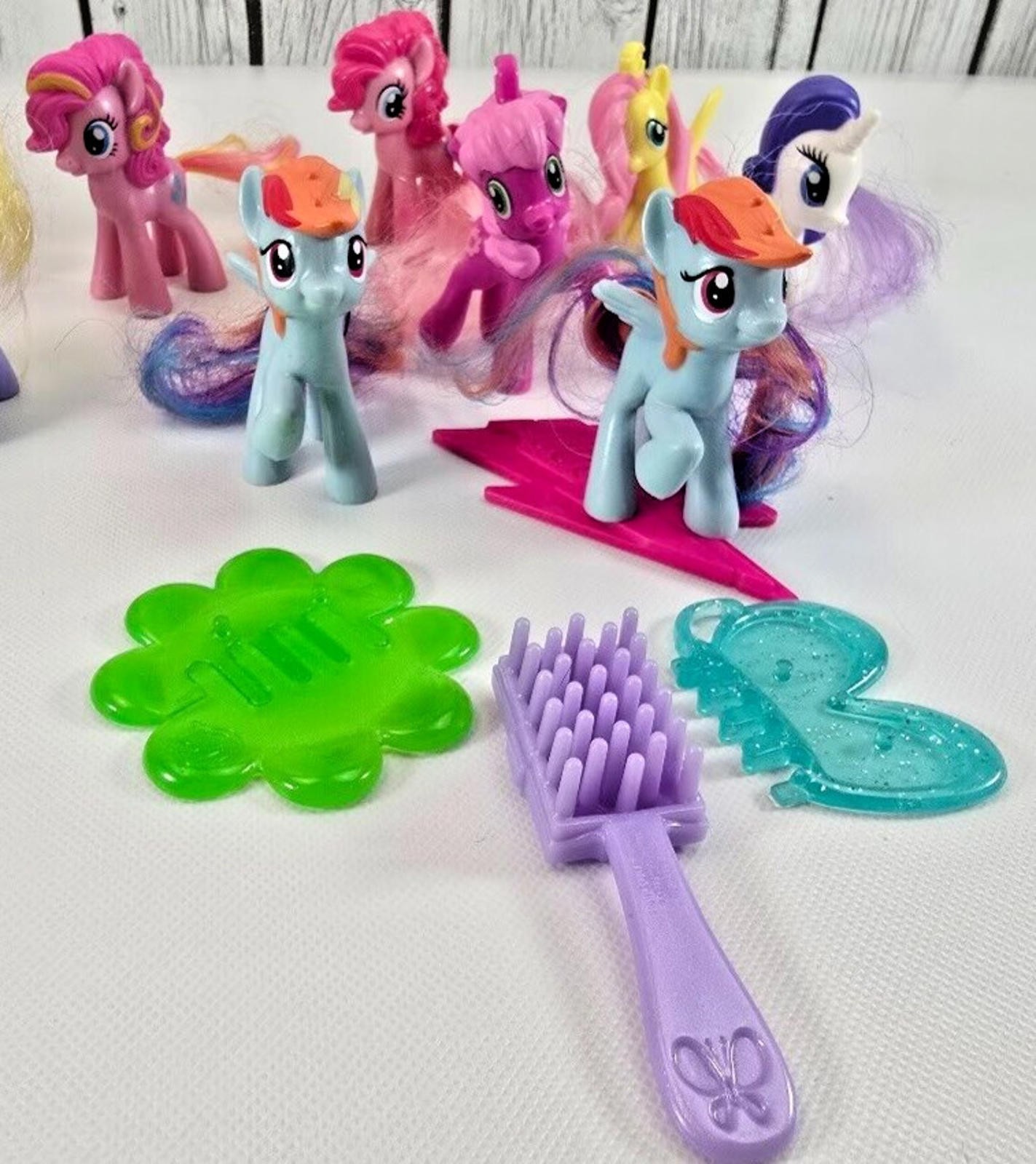 Bring back childhood magic with this lot of twelve My Little Pony McDonalds Happy Meal figures paired with bright clip on accessories. Mini ponies in vibrant pastels spark imaginative play and complete any MLP collection. ? Twelve assorted mini My Little Pony figures plus hair brushes saddles and clip on accessories sized for 3in toys ? Authentic McDonalds Happy Meal premiums early 2000s era colourful G3 style ponies PVC plastic ? Fits dollhouses cake toppers or shelf display perfect gift for retro toy collectors and pony fans ? Clean gently handled condition Made in China stored smoke free ready to ship
