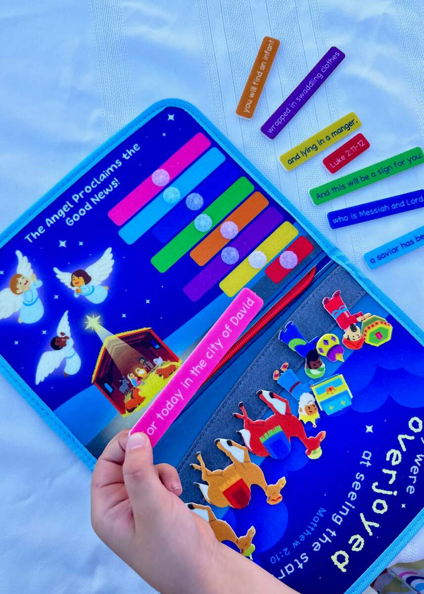 Introduce your little ones to the joy and meaning of the Advent and Christmas seasons with this enchanting, colorful, interactive quiet felt busy book! This teaching toy combines playful learning with the story of the Incarnation, making it the perfect gift for young children eager to explore the true meaning of Christmas.