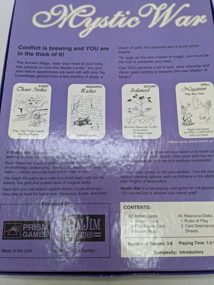 - Mystic War Board Game New Open Box TimJim Games Prism Games