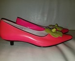 The N.Y.L.A. Neon New Wave Super Pointy Toe Pumps Shoes are a stylish and vibrant addition to any woman's wardrobe. With a pointed toe and kitten heel, these slip-on heels are perfect for both party/cocktail and casual occasions. The pink color, leather lining, and flower detail give off a neon vibe, perfect for embracing the 80s and 90s fashion themes. These vintage-inspired shoes are designed for the modern woman who wants to make a statement with her footwear. Being sold "as is" These are new old stock but were on display and have been in storage. The leather has all over fade and some spots on insole and decorations. There are light scuffs on soles. I use recycled materials for packaging whenever possible. bOx2 Please ask questions as all sales are final.