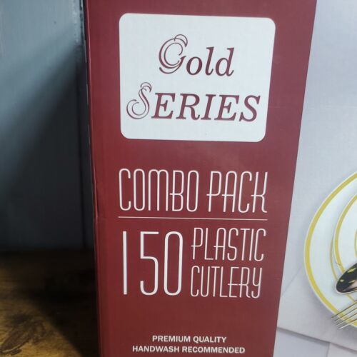N9R 150PCS Gold Plastic Plates with Plastic Cutlery Set and Cups Disposable S...