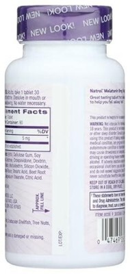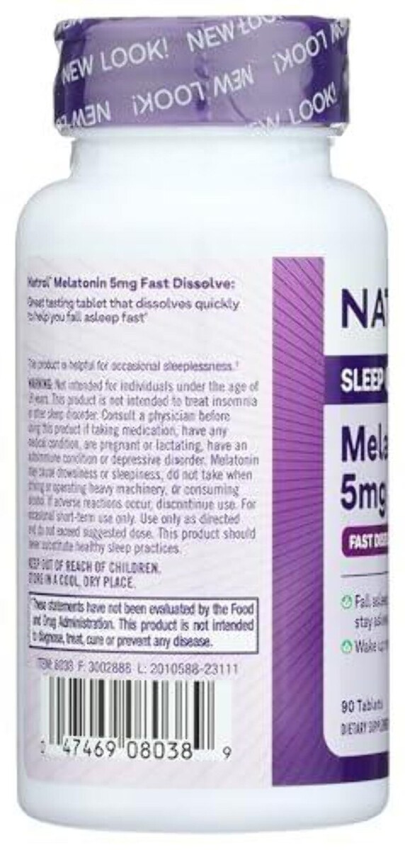 Product Description Expiration Date of 11/30/2026 Natrol melatonin fast dissolve assists with occasional sleeplessness and helps fall asleep faster, stay asleep longer and wake up feeling refreshed. Natrol melatonin fast dissolve, made with 99% pure melatonin, is a drug-free sleep aid supplement thats fast acting, dissolves quickly in the mouth with no water needed. Product Benefits Helps Fall Asleep Faster. Initial Quick Release Of Melatonin. Help Sleep Through The Night. Ingredients Suggestions Adults, take 1 tablet 30 minutes before bedtime. Special Note No: Milk, Egg, Fish, Crustacean Shellfish, Tree Nuts, Peanuts, Wheat, Soybeans, Sesame. Warnings Consult a physician before using this product if under the age of 18, taking medication, have any medical condition, are pregnant or lactating.