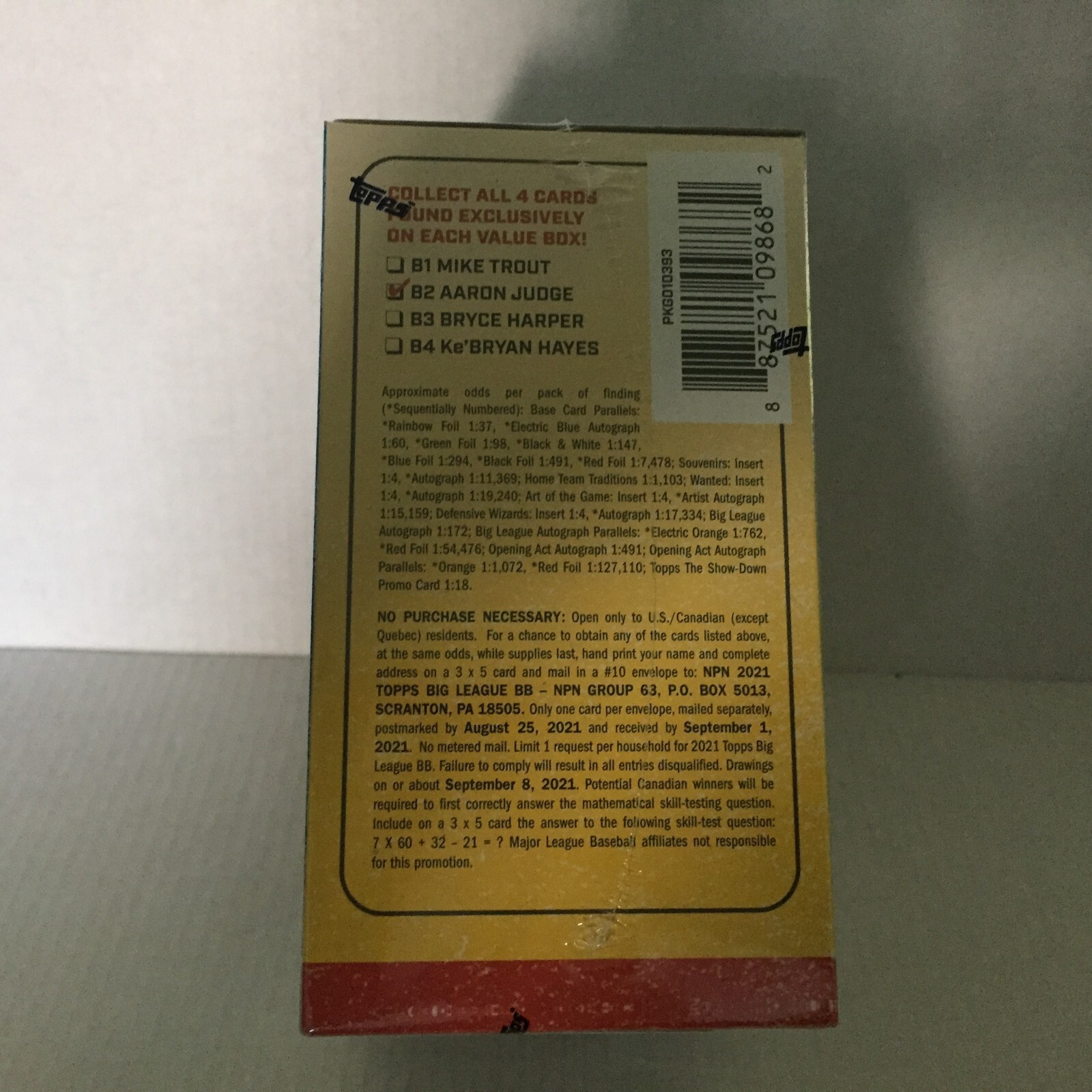 NEW 2021 Topps Big League Baseballl Blaster Box - 105 Total Cards + Aaron Judge Outter Box Card