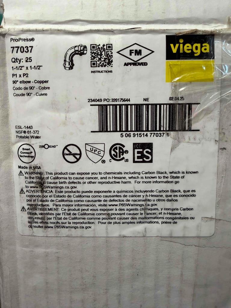 NEW 25 Pieces Viega ProPress 77037 1-1/2" x 1-1/2" P1 x P2 Copper 90° Elbow