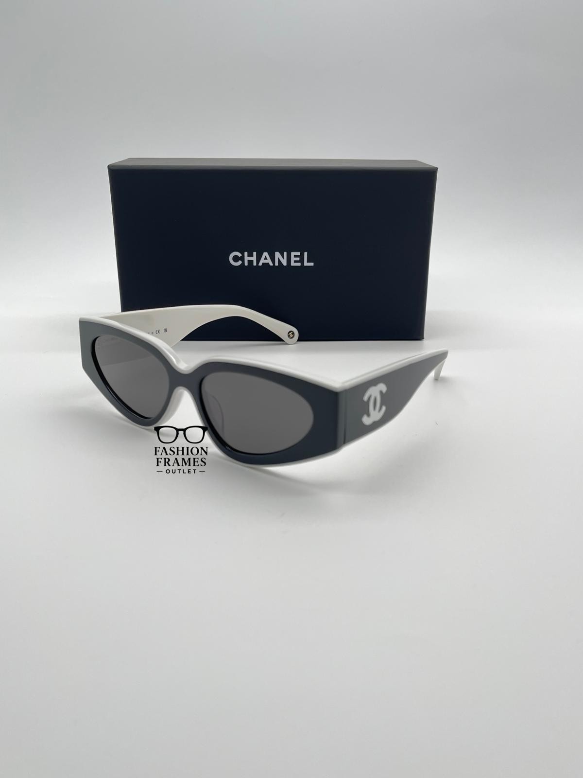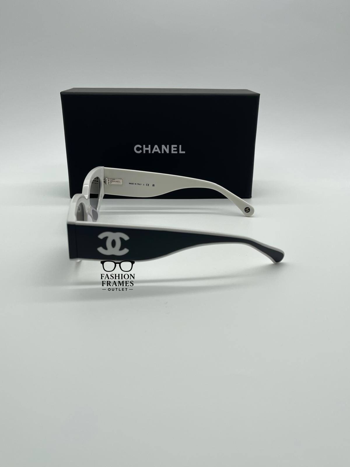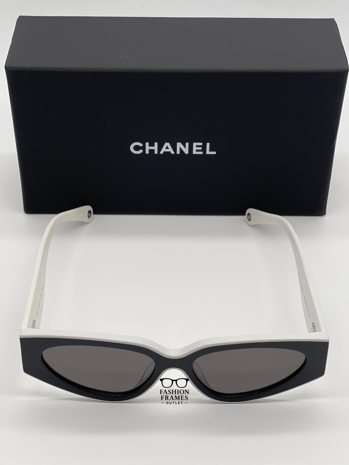 - NEW CHANEL CH6056 Cat Eye Sunglasses Black White Acetate Gray Lenses - 100% Auth